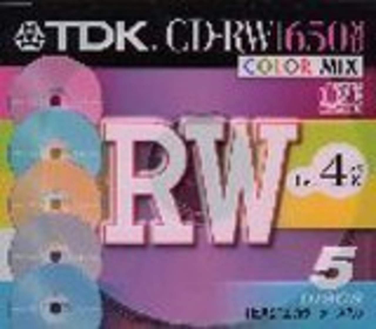 TDK CD-RWデータ用650MB 4倍速カラーミックス5mm厚ケース入り5枚パック [CD-RW74X5CCS]