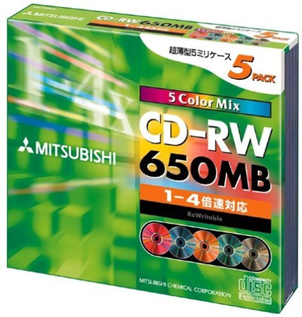 三菱化学 SW74QM5 CD-RW 650MB 5枚 スリムケース入り カラーミックス