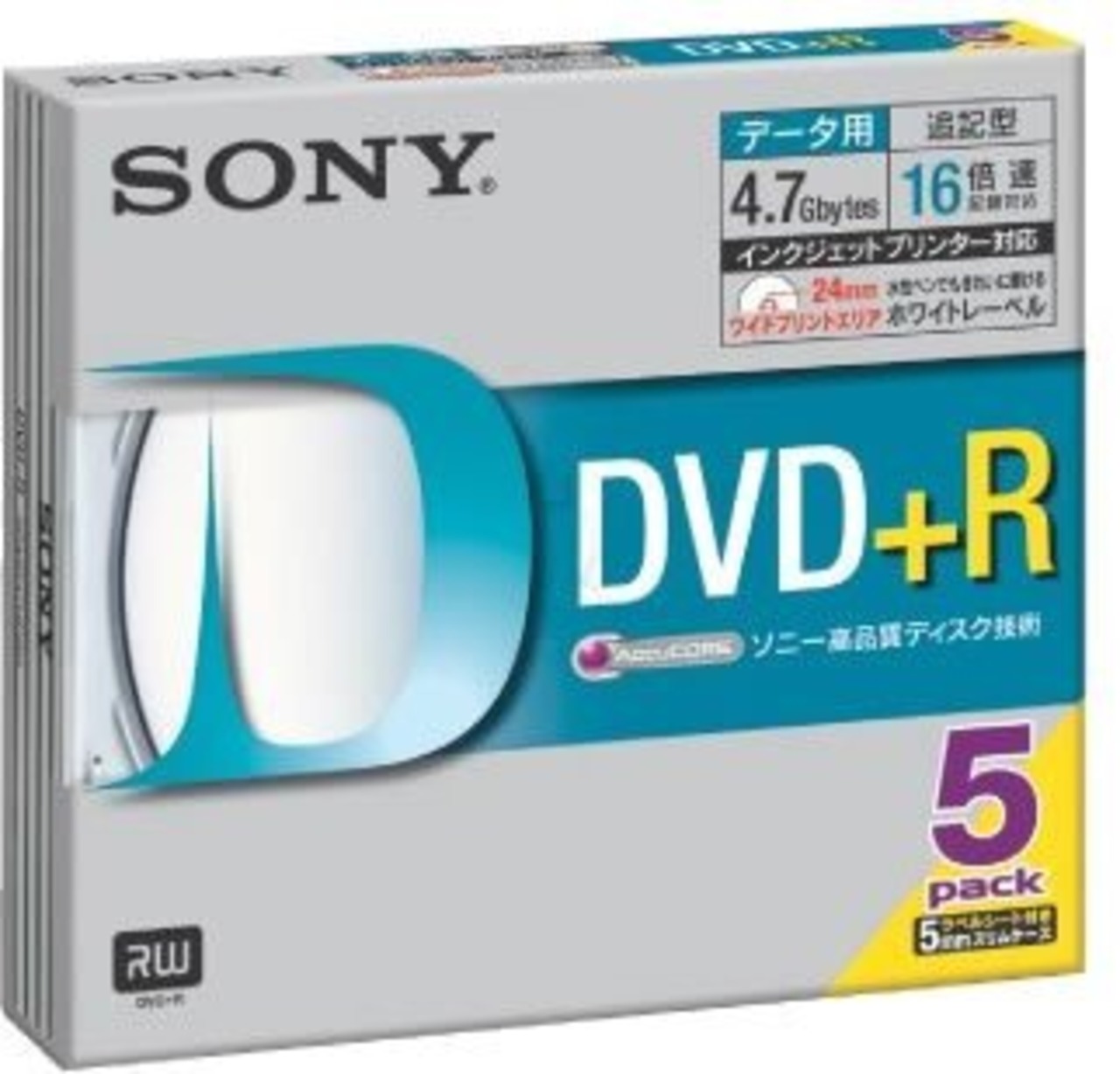 一回のみ書き込みが可能なDVD+R。レーベル面に印刷できるインクジェットプリンター対応 ホワイトレーベル(ワイドプリントエリア)。16倍速記録対応(DVD+R for Ver.1.3に準拠)。AccuCORE採用により、安定した書き込み・再生を実現。インデックス機能付きバックカード。5mmケース。