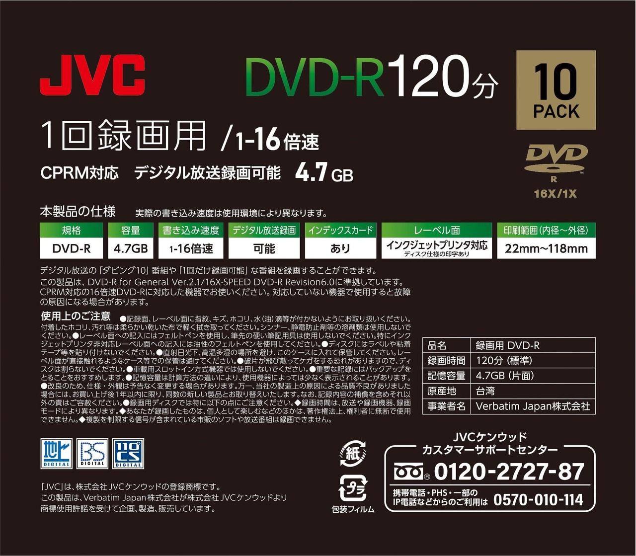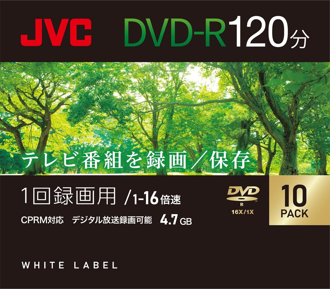JVC 1回録画用 DVD-R 120分 片面1層 1-16倍速 10枚 ディーガ その他 国内主要メーカーのレコーダー動作確認済 ホワイトディスク VHR12JP10C2