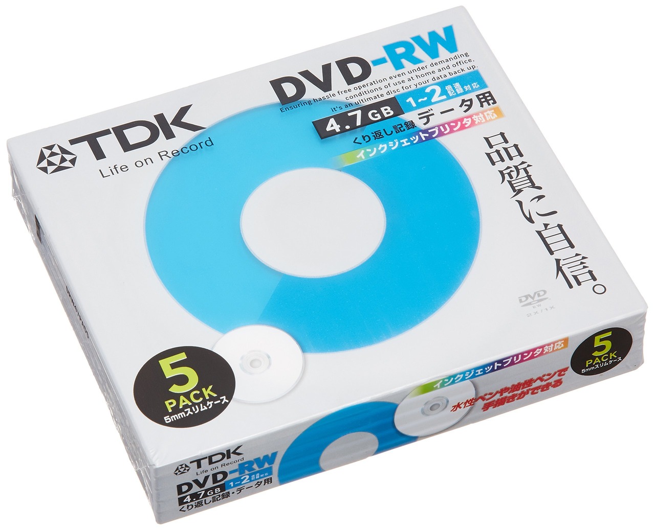 TDK データ用DVD-RW 1-2倍速 インクジェットプリンタ対応(ホワイト) 5枚パック DRW47PA5S