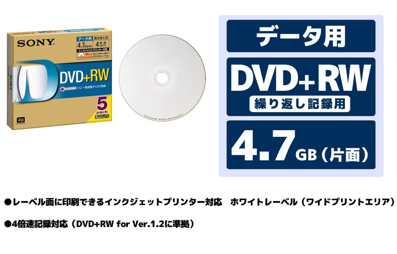 ソニー データ用DVD+RW 4倍速 5mmケース 5枚パック 5DPW47HPS