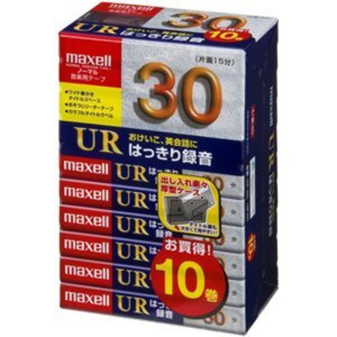 maxell オーディオテープ、ノーマル/タイプ1、録音時間30分、10本パック UR-30L 10P(N)