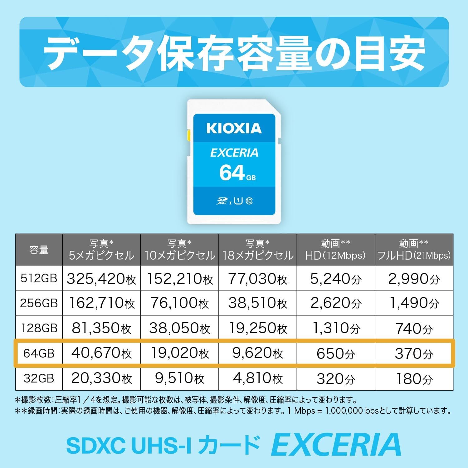 キオクシア(旧東芝メモリ) EXCERIA SDメモリカード