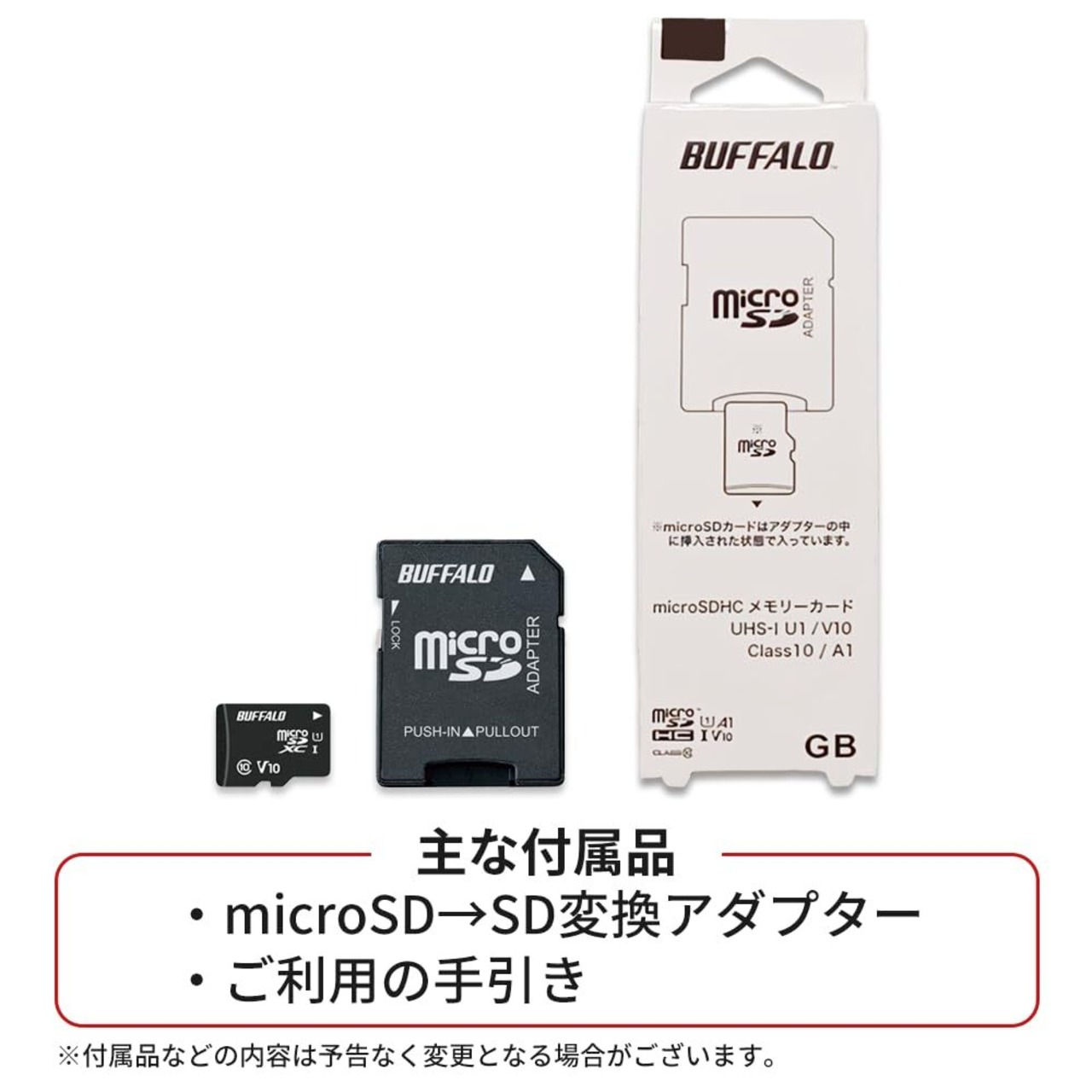 【主な付属品】microSD → SD変換アダプター、ご利用の手引き