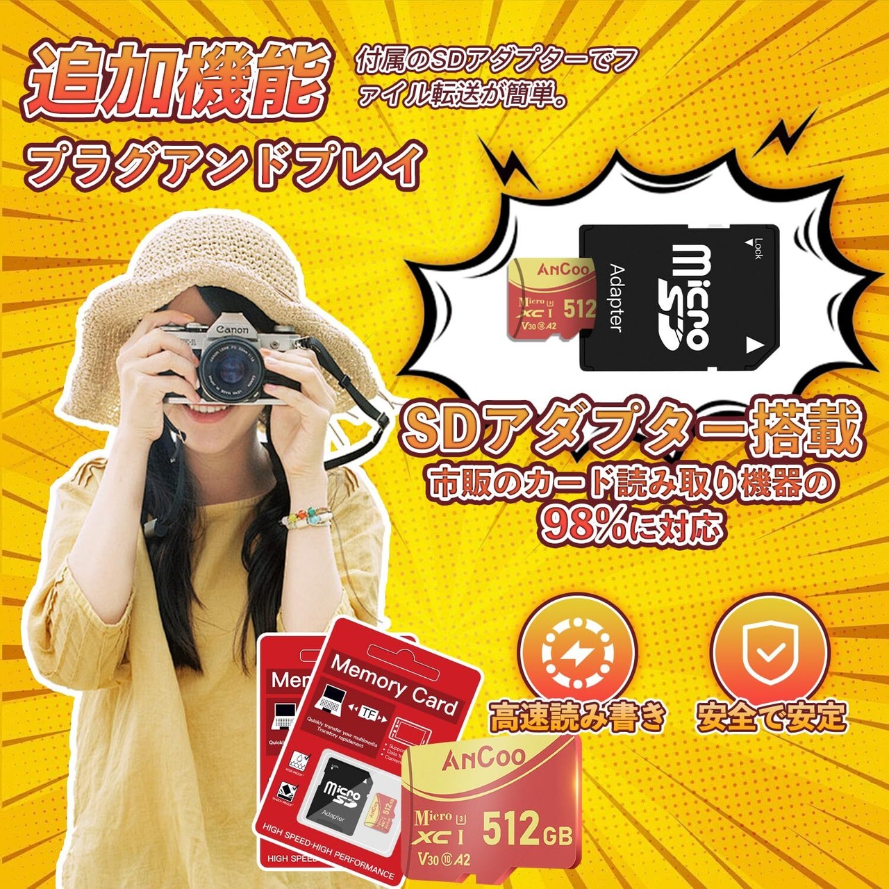 AnCoo マイクロSDカード 512GB MicroSDXC 対応 4Kプロ動画/GoPro/アクションカメラ用 3防仕様 UHS-I U3 A2 SD Card