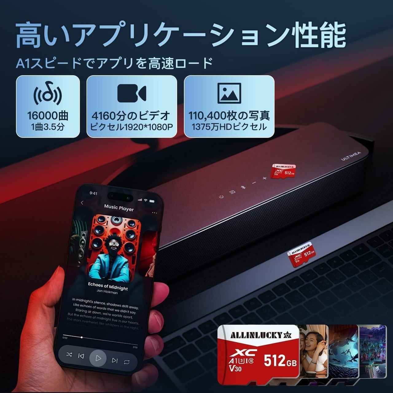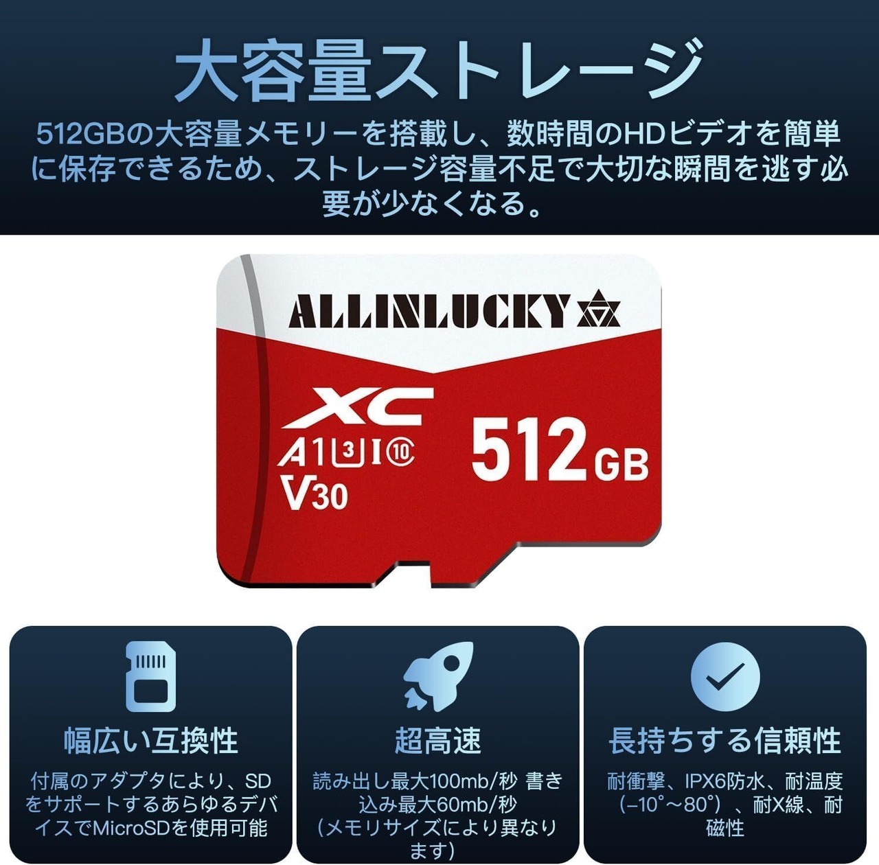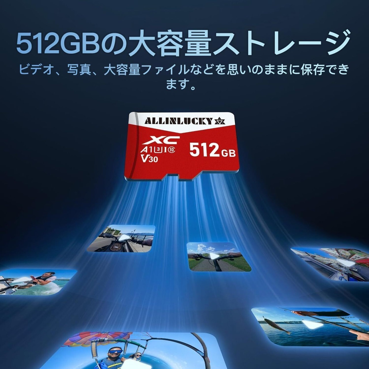 ALLINLUCKY 512GB micro sdカード マイクロSDカード MicroSDXC 512GB メモリーカード 高速データ転送 ミニSDカード メモリケース付き SD変換アダプタ