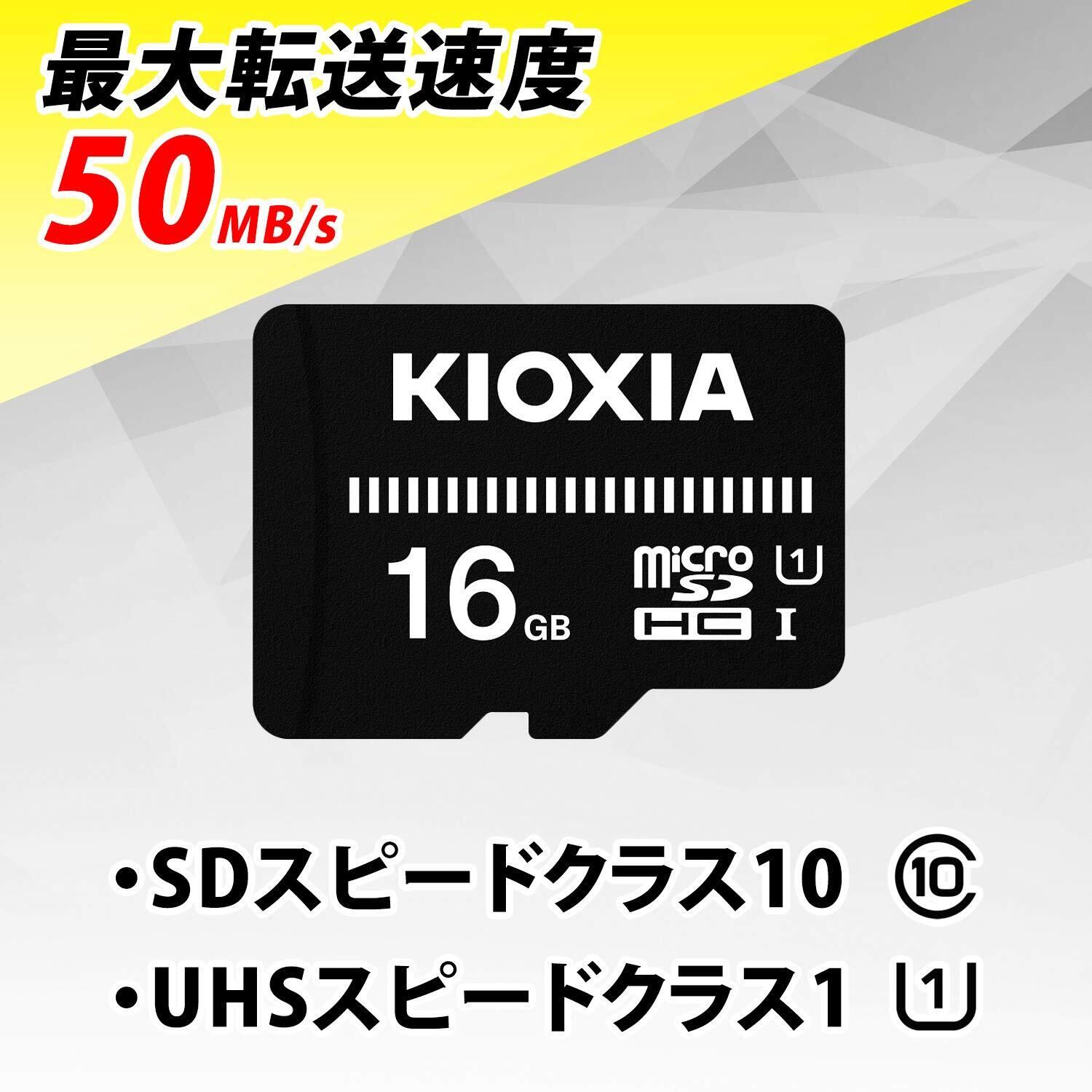 KIOXIA(キオクシア) 旧東芝メモリ microSD 16GB UHS-I対応 Class10 microSDHC (転送速度50MB/s) 国内サポート正規品 メーカー3年 KTHN-MW016G