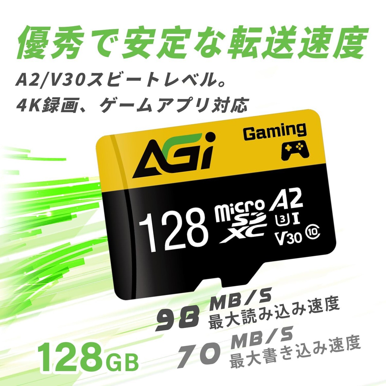 AGI microSDカード 128GB UHS-I Class10 U3 Nintendo Switch 動作確認済 最大転送速度98MB/秒 A2 V30 Full HD microSDXC TF138