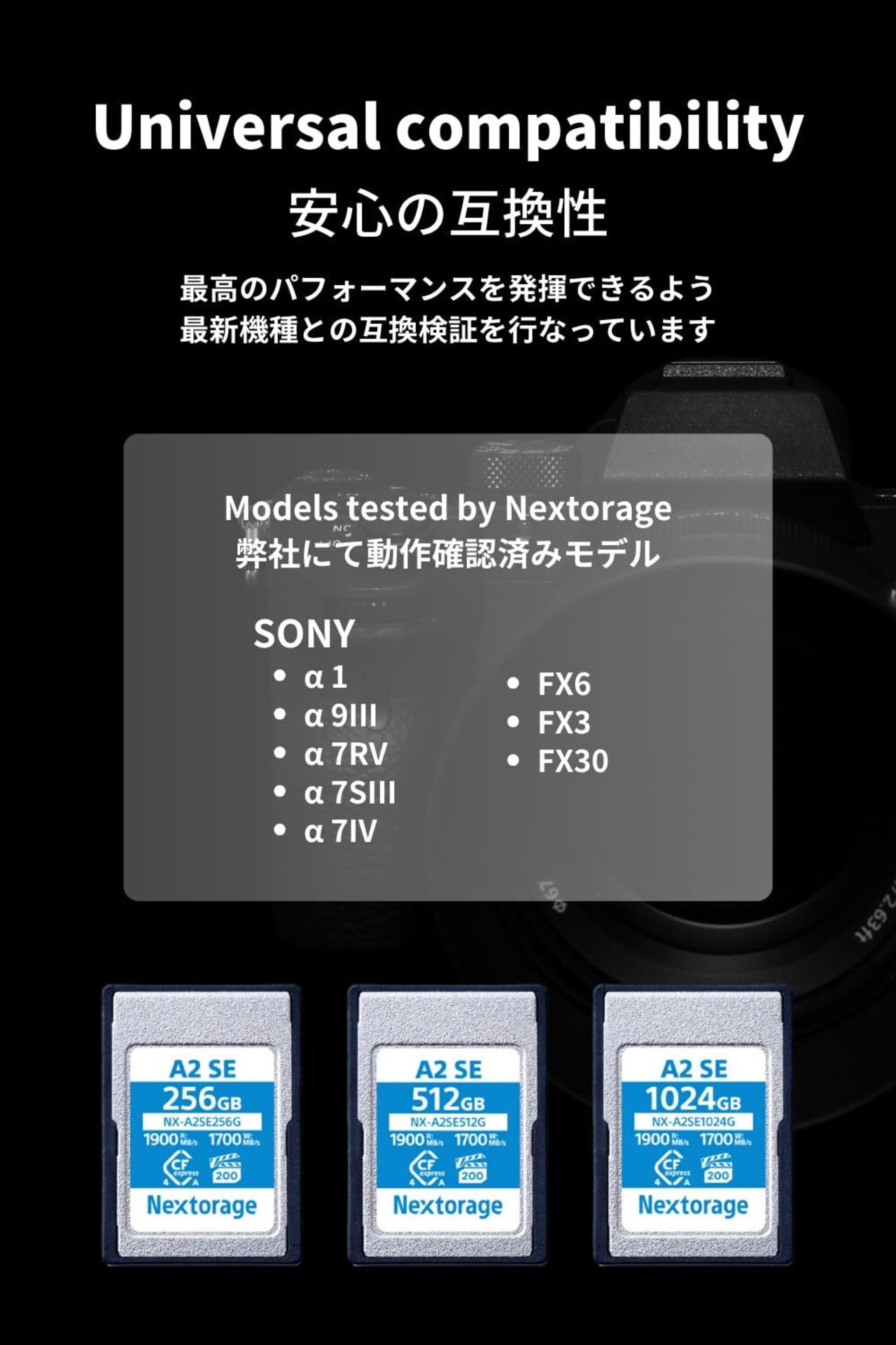 Nextorage (ネクストレージ) について:Nextorageはソニーカメラ用のメモリーカードを20年間以上開発してきた元ソニーエンジニアメンバーが立ち上げた日本の会社です。クリエイティブからエンターテインメントまで、強い信頼性が求められる様々なシーンに最適化した製品を提供しています。