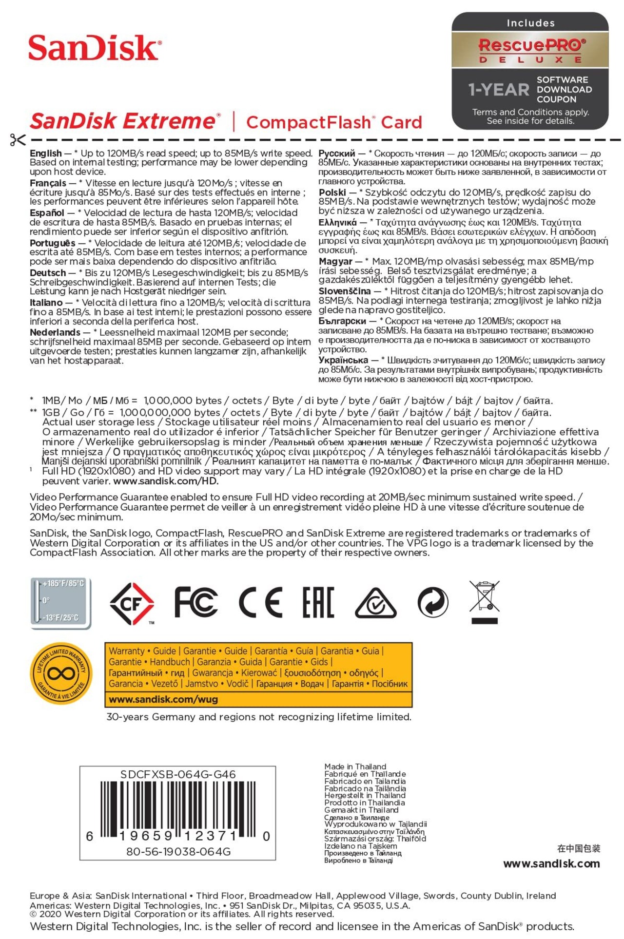 CF Extreme 64GB, 120MB/s read speed, 85MB/s write speed