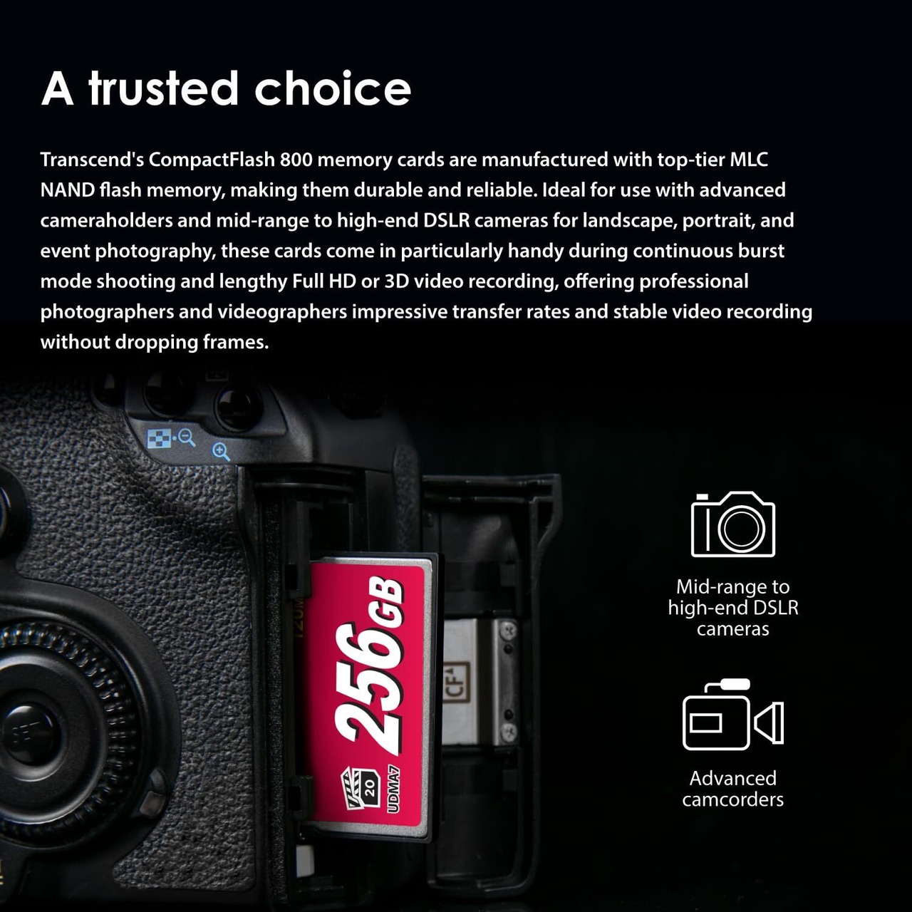 ハイパフォーマンスと大容量を備えたトランセンドのCF800は高画質な写真や映像を撮影するプロにも最適なメモリカードです。データ転送も優れているのでPCでデータ編集を行う場合の作業効率を高めてくれます。