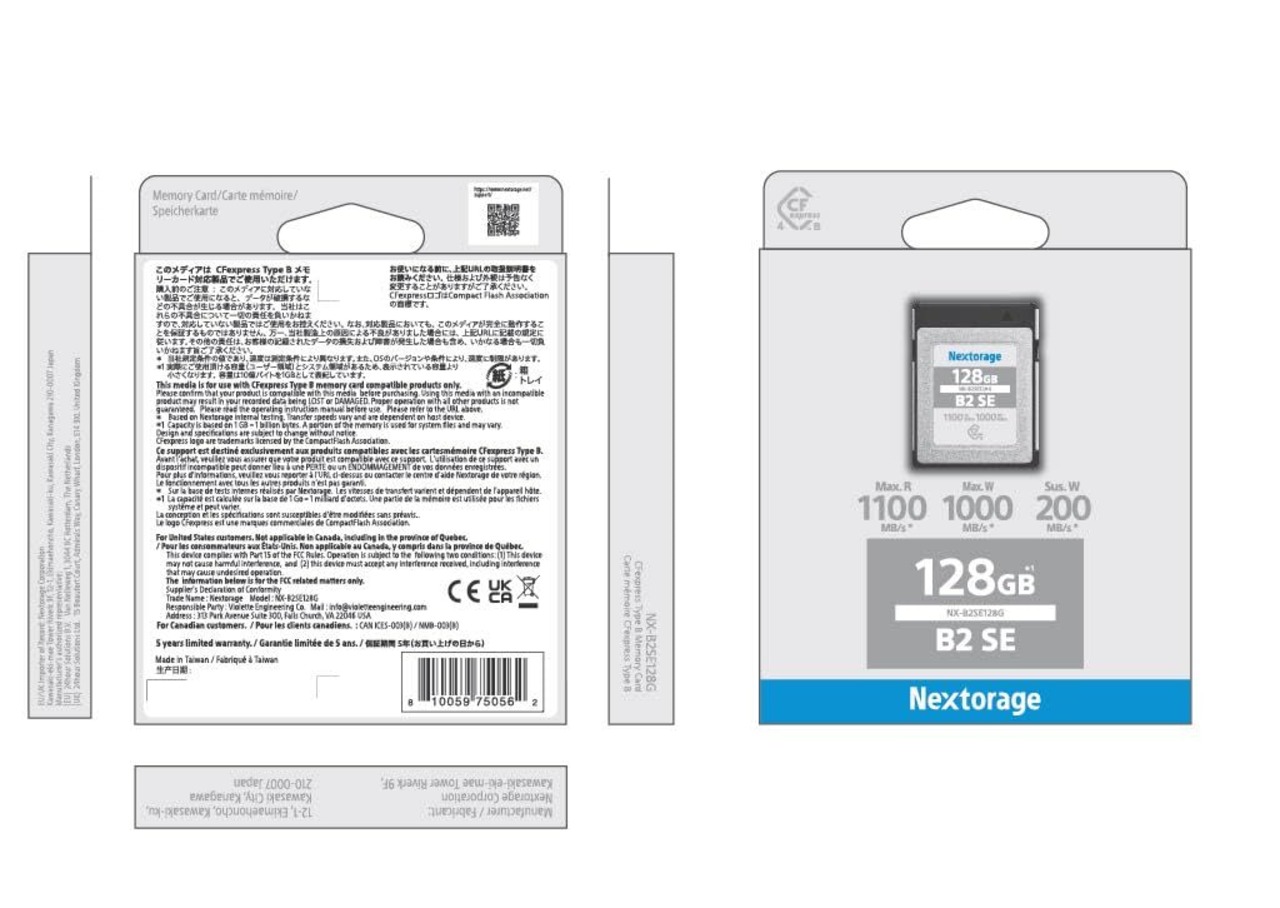 Nextorage 日本メーカー CFexpress TypeB 128GB 最大読出し速度1100MB/s 最大書込み速度1000MB/s NX-B2SE128G ネクストレージ メモリーカード