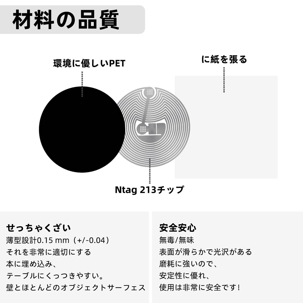 【サイズ】50枚入りNFCタグ、直径:約25ミリ、iphone及びandroid対応のNTAG213 NFC タグ(144バイト)