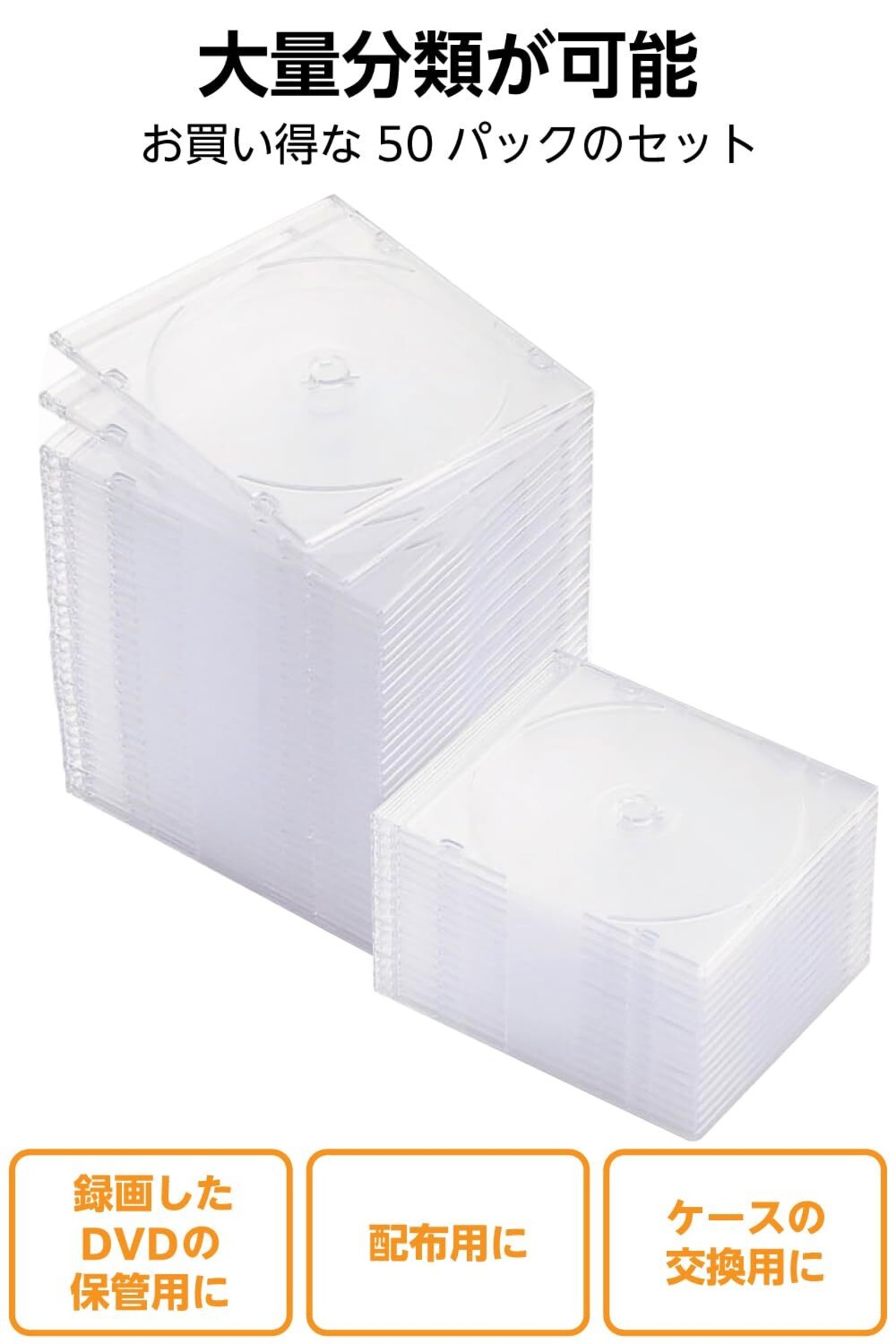 エレコム CD DVDスリムプラケース 1枚収納 50パック クリア CCD-JSCS50CR/EC