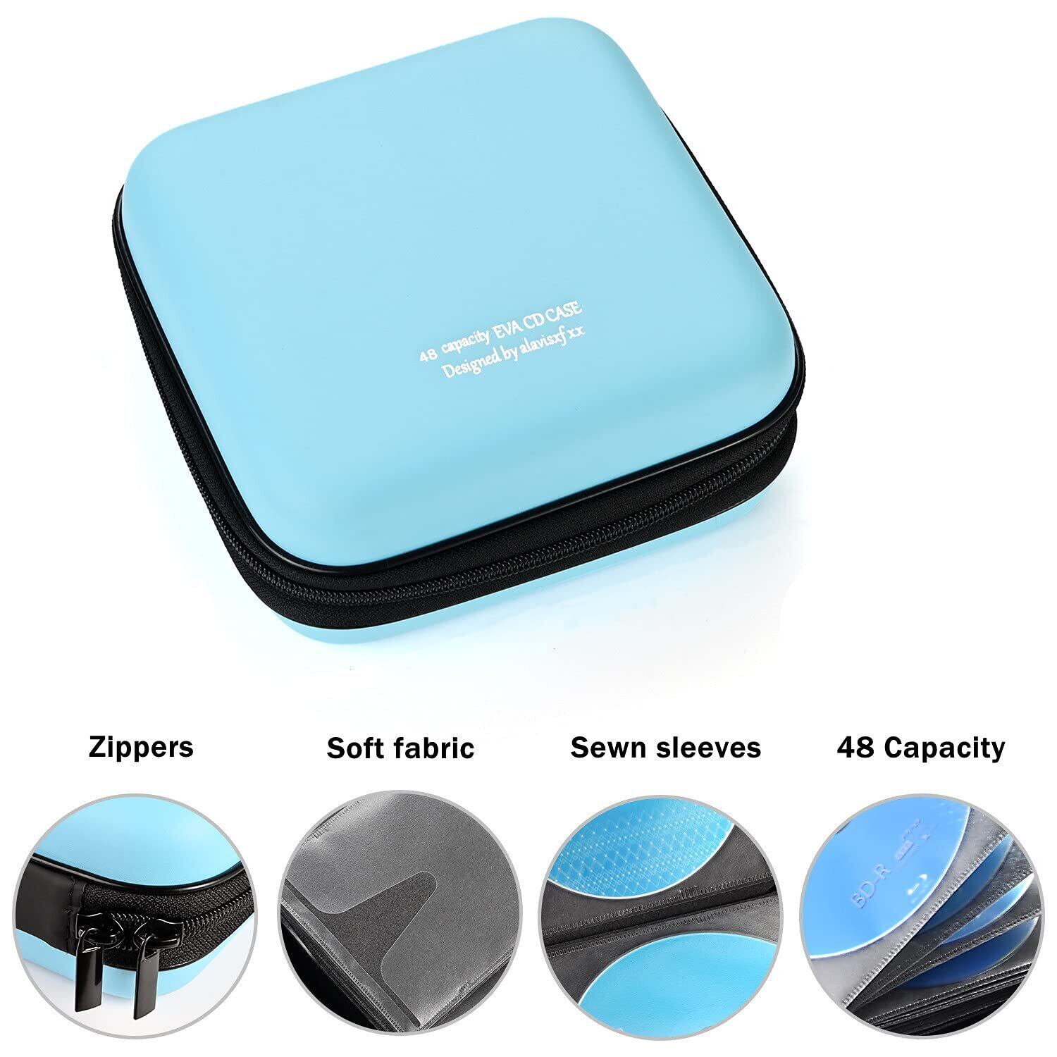 LIOVODE 48枚収納 CDケースポータブルEVA blu-ray ディスク収納ケース 大容量 DVD/VCD 収納 (48枚, スカイブルー 48)