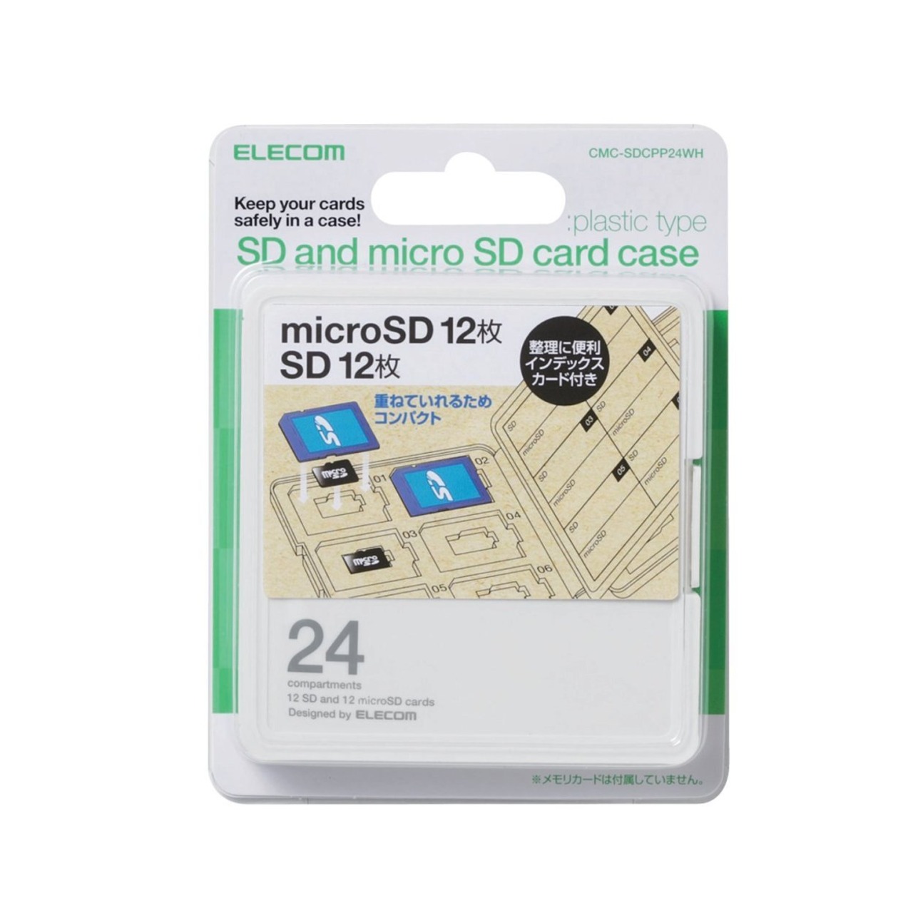 エレコム(ELECOM) メモリカードケース SD ケース プラスチック SD12枚 + microSD12枚収納 ホワイト CMC-SDCPP24WH