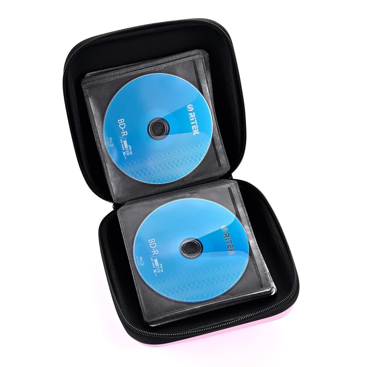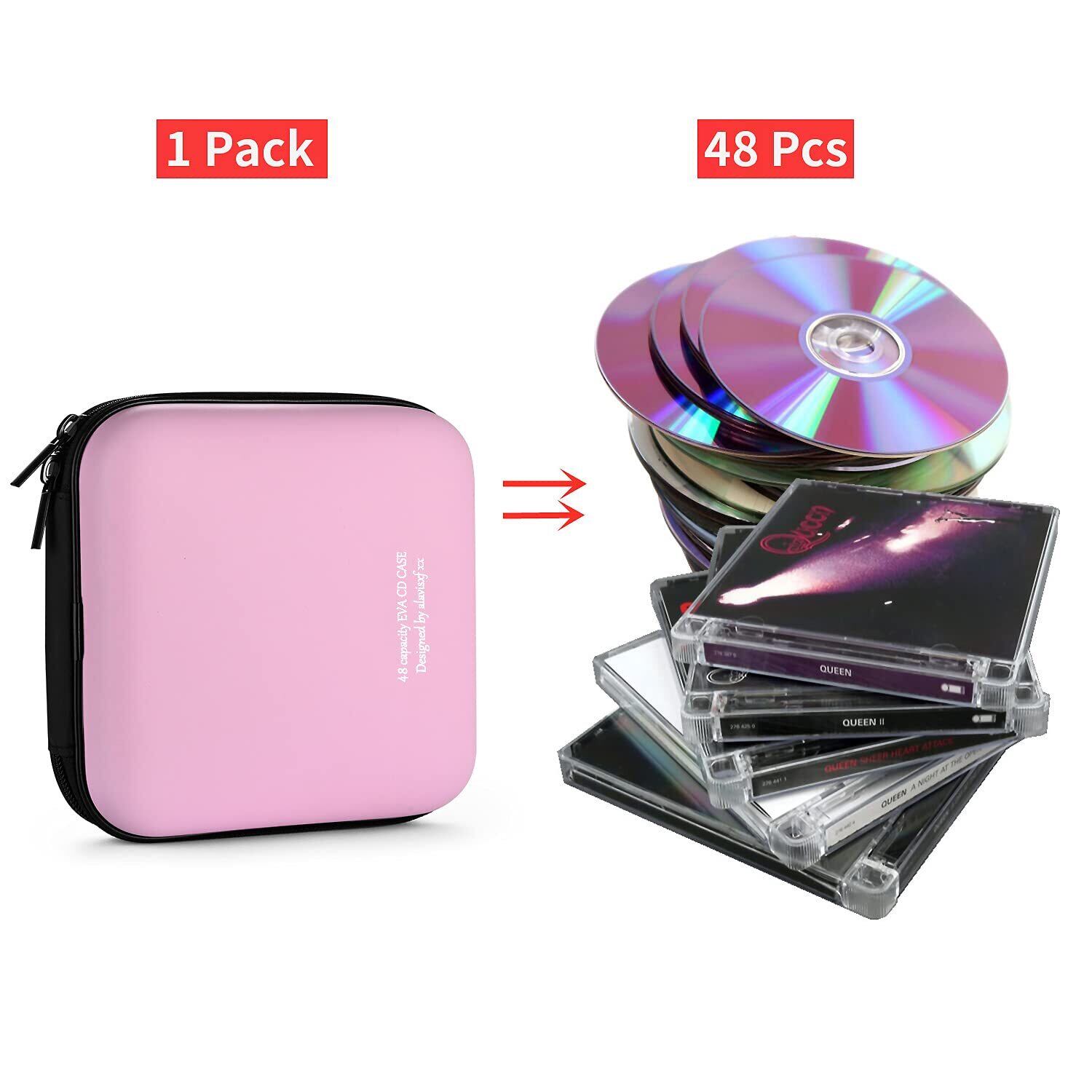 LIOVODE 48枚収納 CDケースポータブルEVA blu-ray ディスク収納ケース 大容量 DVD/VCD 収納 (48枚, ピンク48)