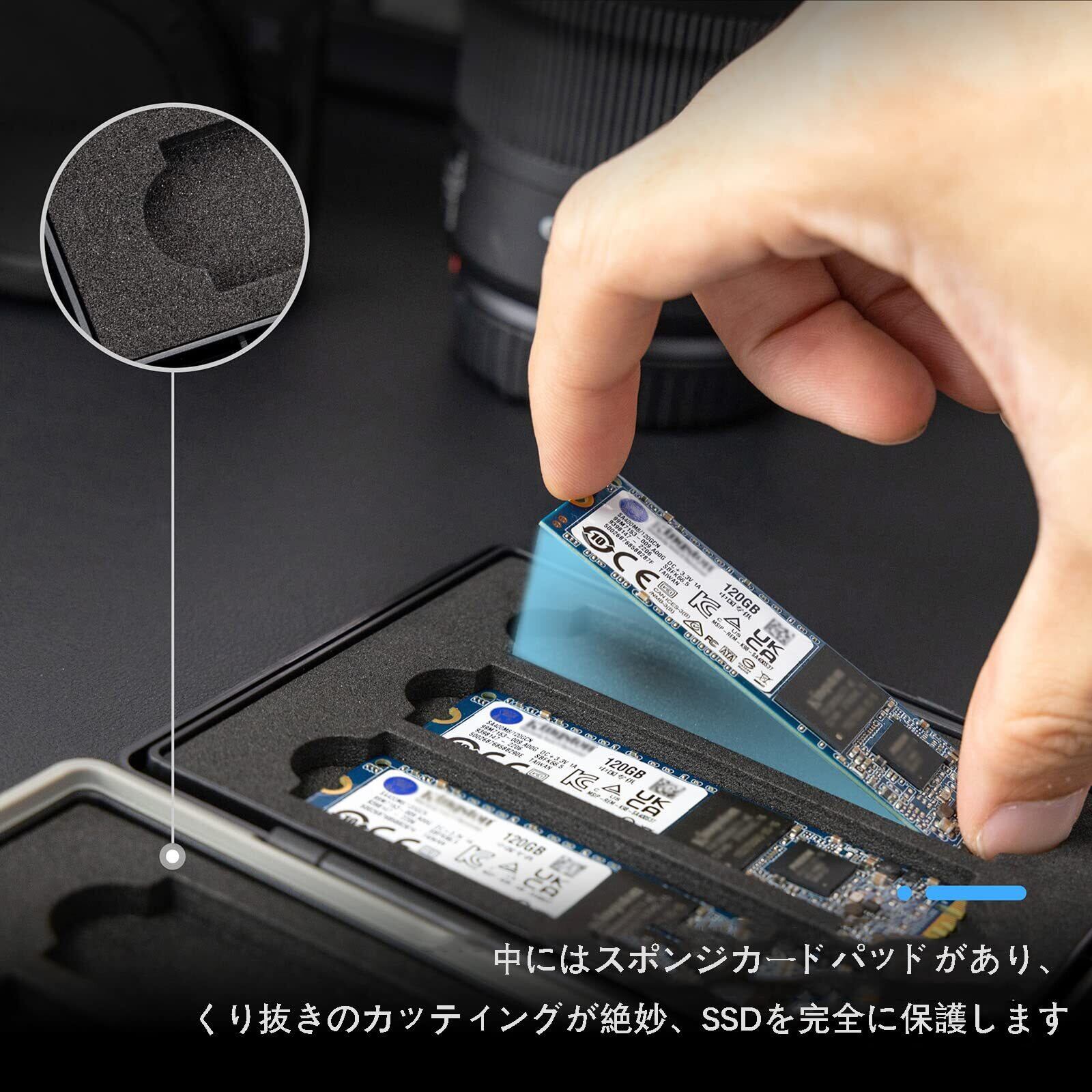 【柔らかいスポンジクッション】絶妙でスタイリッシュな外観、中にはスポンジカードパッドがあり、くり抜きのカッティングが絶妙、SSDを完全に保護します。