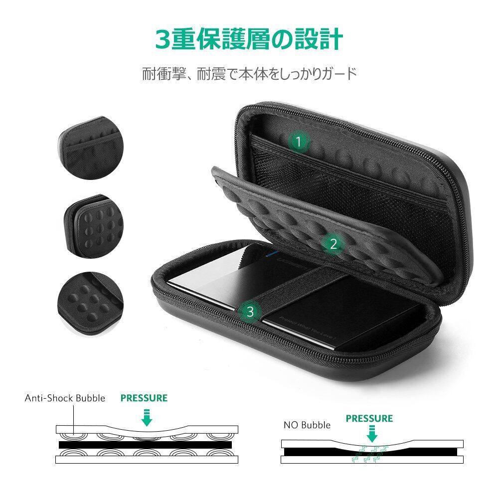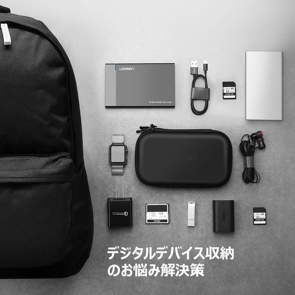UGREEN 2.5インチ HDD保管バッグ ケース ハードディスク 収納ケース ポータブルHDD ケース 耐衝撃 防震 防塵 無毒 消臭処理 2.5型HDD/SSD/モバイルバッテリー/スマホ/カメラ/音楽プレイヤー/USBメモリー/ケーブル/イヤホン等収納 (17.3×10.3×4.4CM)