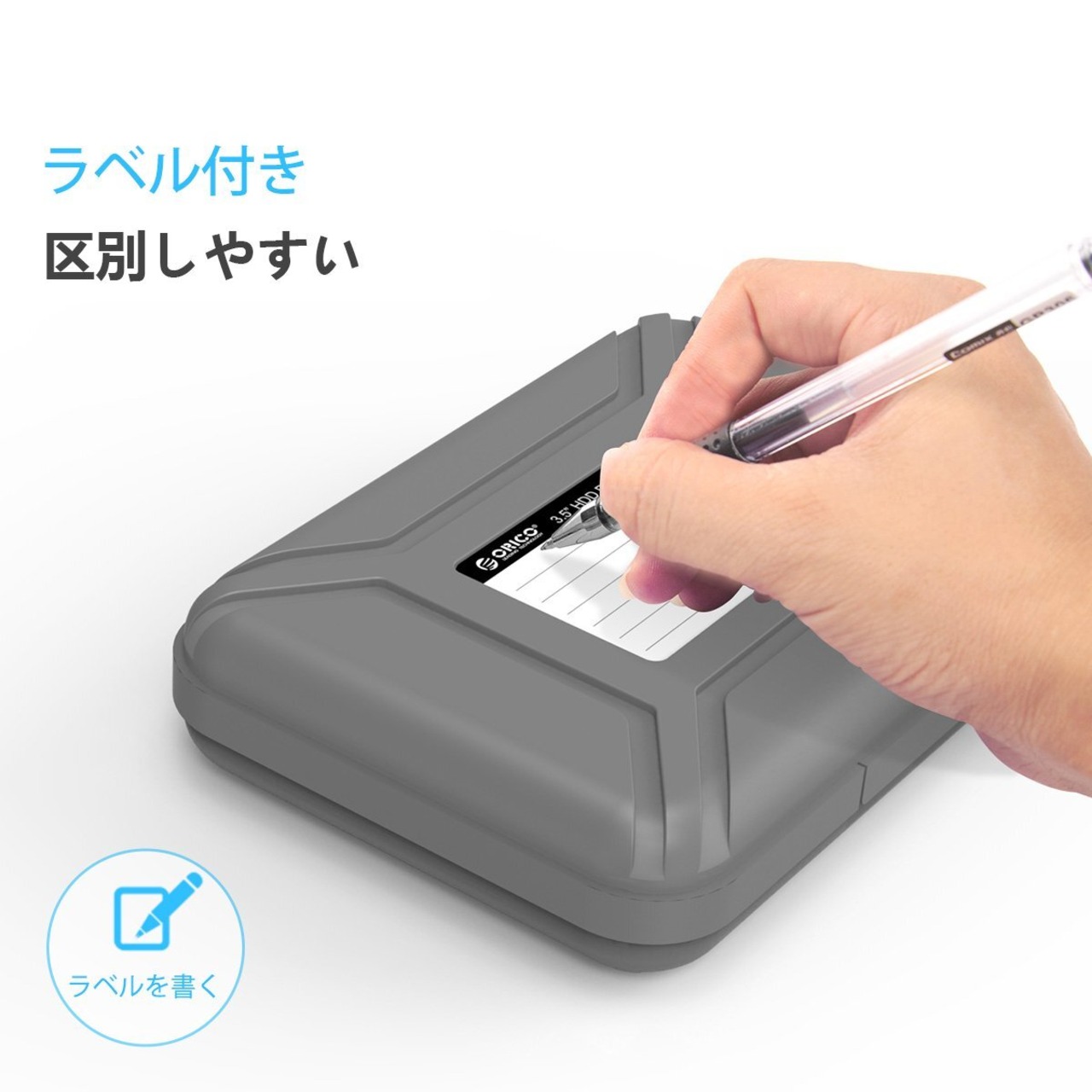 ORICO 3.5インチ ハードディスク 収納ケース ポータブル HDD保管ケース 書き込みラベル付き EVA保護層内蔵 防湿 耐衝撃 防塵 静電気防止 5台セット グレー PHX-5S
