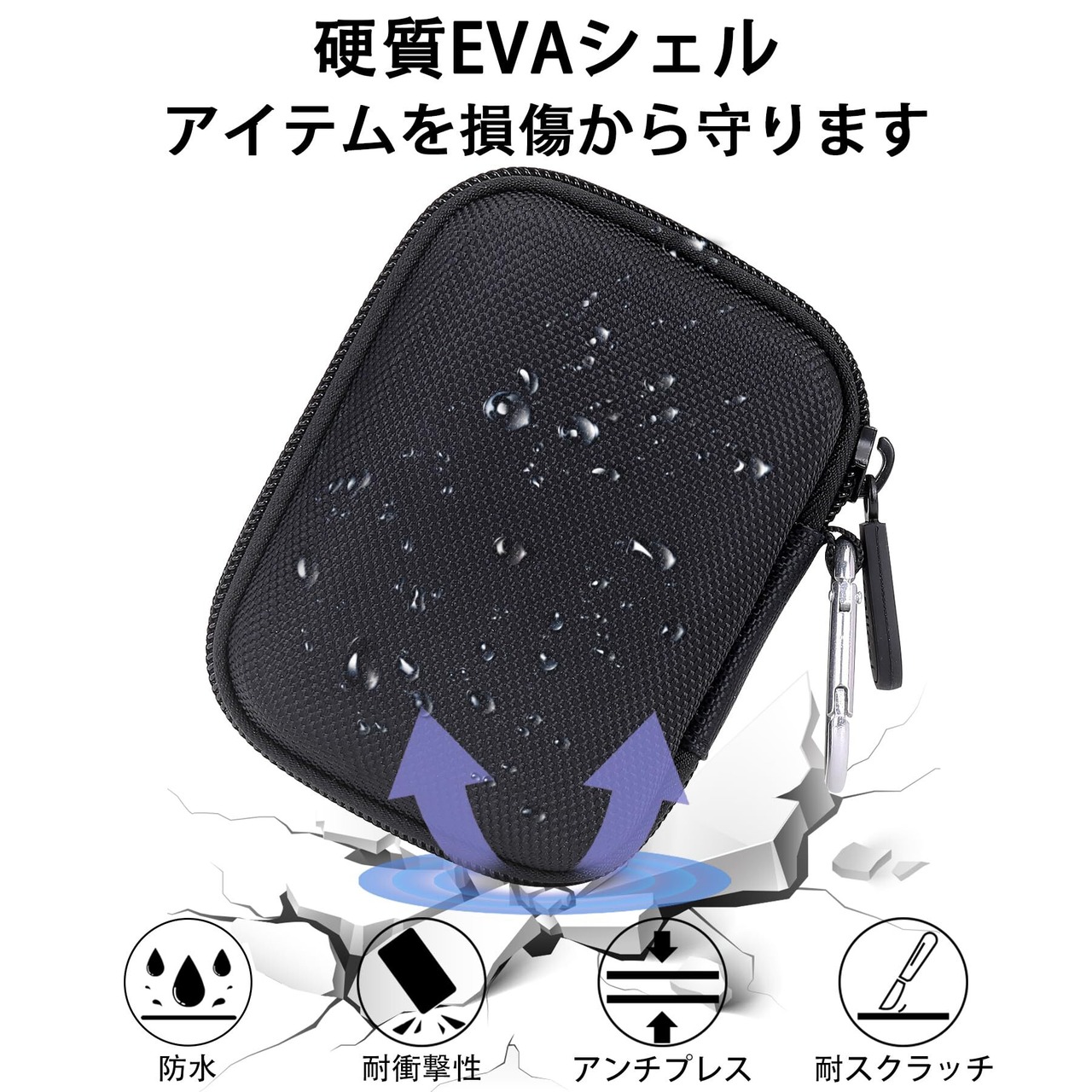 【外層は半防水】アウターシェルはEVA素材で、硬く、耐衝撃性、耐傷性に優れています。 防塵性にも優れています。Crucial X9 Crucial X10 Pro 4TBをしっかりと保護します。