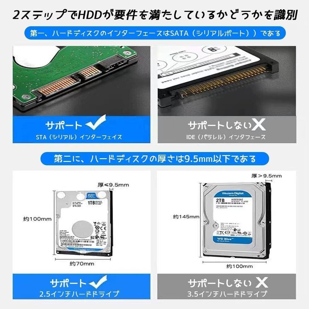 【広範な互換性】SATAハードディスクボックスは、2.5インチSATAハードディスクSSDをPC、ノートパソコン、テレビ、またはPS 4に接続して、データ転送とストレージを拡張するのに役立ちます。このハードディスクボックスは、Windows、Linux、Mac OSおよび以上のシステムをサポートする2.5インチ7 mm/9.5 mm 6 TBソリッドステートハードディスクに適しています。