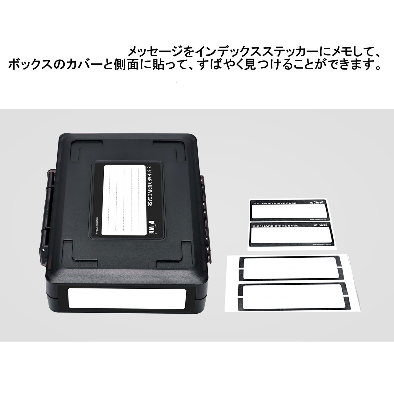 KIWIFOTOS 3.5インチ ハードディスク 適用 HDD収納ケース HDD保管ボックス 積み重ねできる収納 高強度なPC製 丈夫 耐衝撃 耐圧 静電気防止 防湿 防塵 耐摩耗性 HDD保護 書き込みラベル付き 管理簡単 収納便利 ブラック
