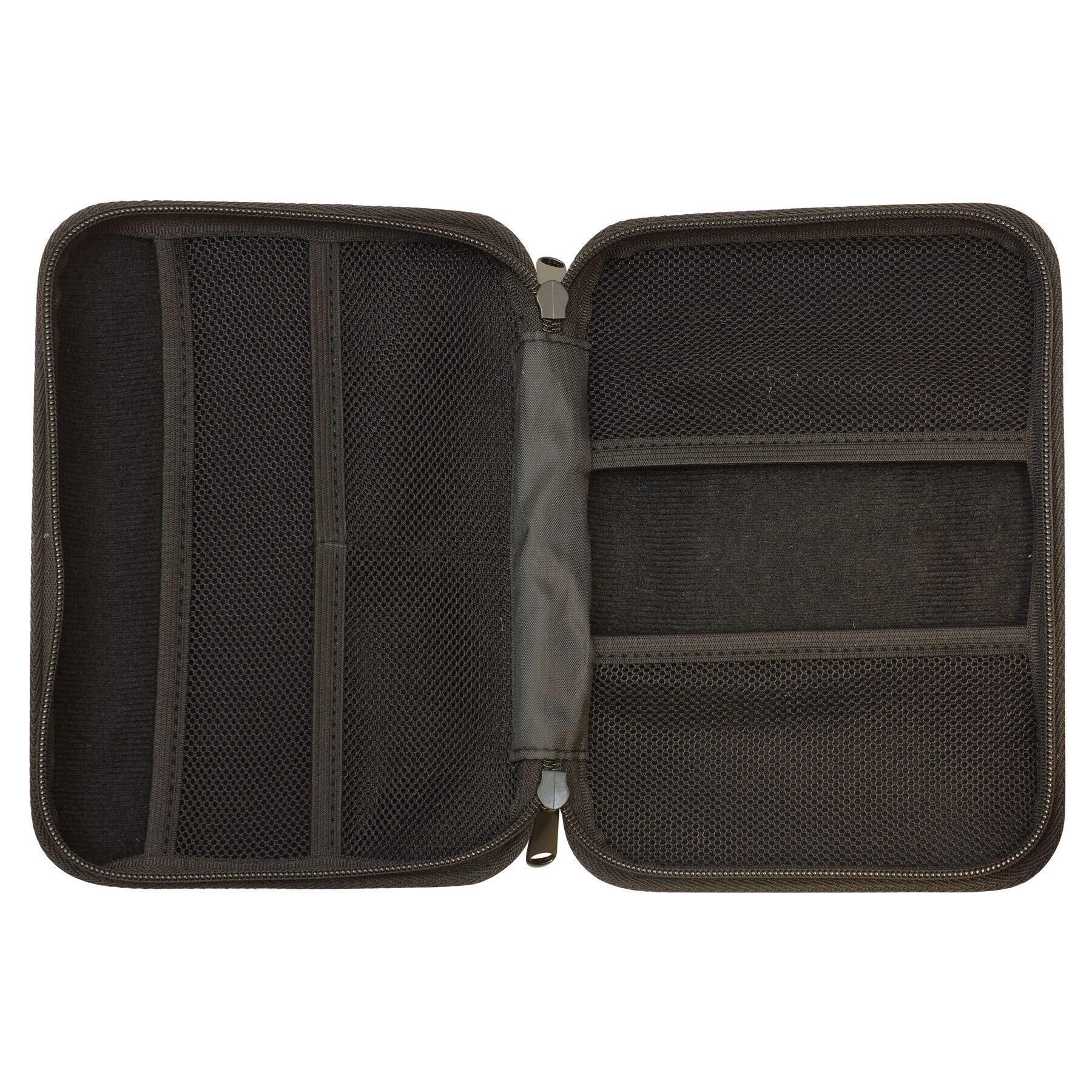 耐衝撃性に強い特性を持つポリカーボネート製のファスナーケース。内側にはクッション性の生地が貼られているので、モバイルガジェットや衝撃に弱い電子機器の収納に最適です。