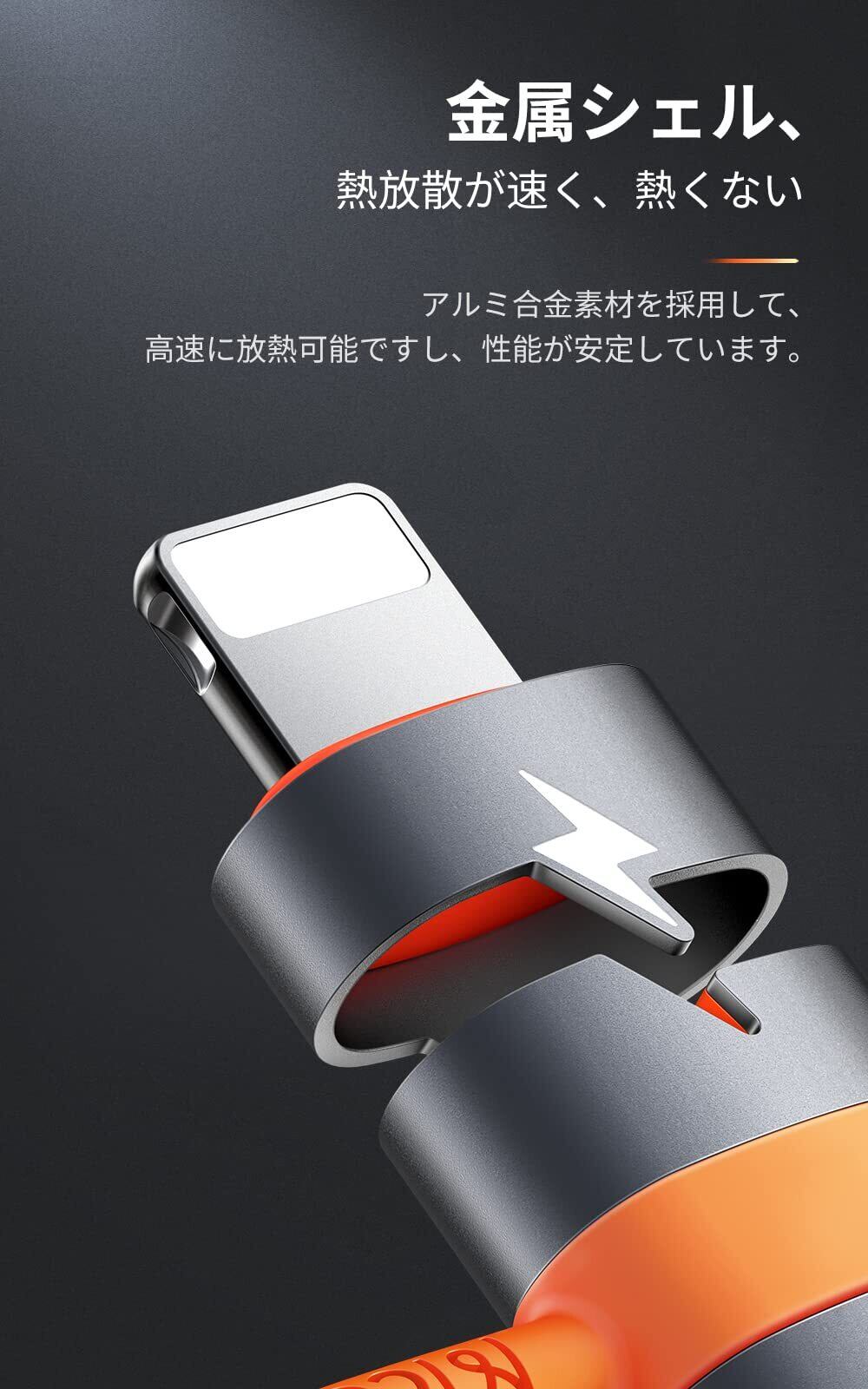 【高品質な素材】:アルミ合金素材を採用して、高速に放熱可能ですし、性能が安定しています。精密なコネクタにより、スムーズに抜き差すことが可能です。インターフェースは平らで、ぴったりとフィットし、緩みません。【親切な設計、紛失防止】:シリコンザイル設計は、ケーブルに直接被せることができます。iOS機器を接続して充電でき、紛失にくいです。
