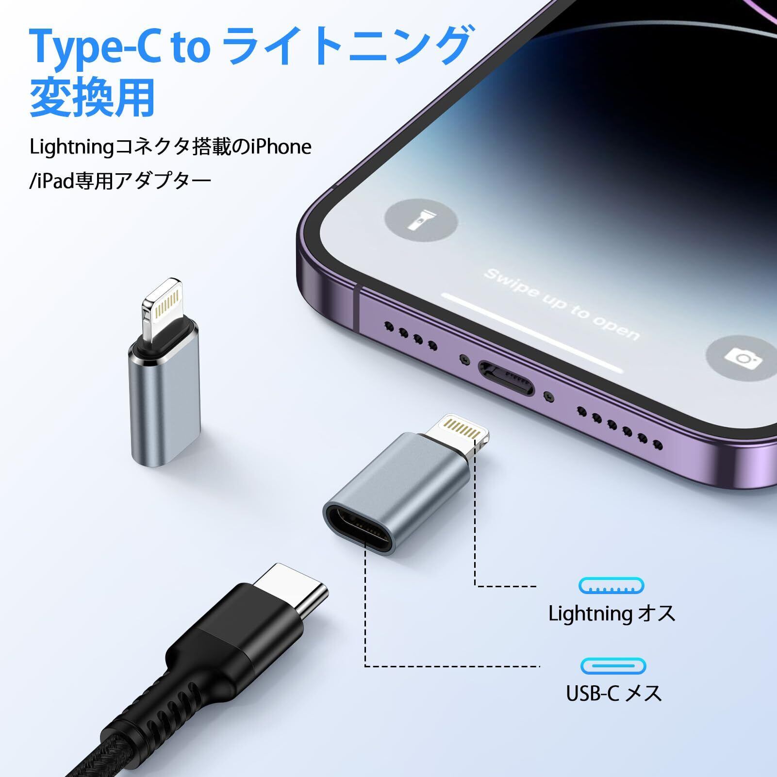 【Lightning USB-C 変換アダプタ】本製品はType-Cケーブルを瞬時にiPhoneに充電可能なlightning usb-c 変換アダプタです。 ライトニングケーブル USB-C 変換 ーは、USB-A to USB-C および USB-C to USB-C ケーブルと互換性があり、本アダプタがあれば、外出時は Type-Cケーブルだけで、ライトニングポートのiPhoneとType-CポートのAndroid機器を充電できます。(USB-A to USB-C および USB-C to USB-C ケーブルと互換性があります。)