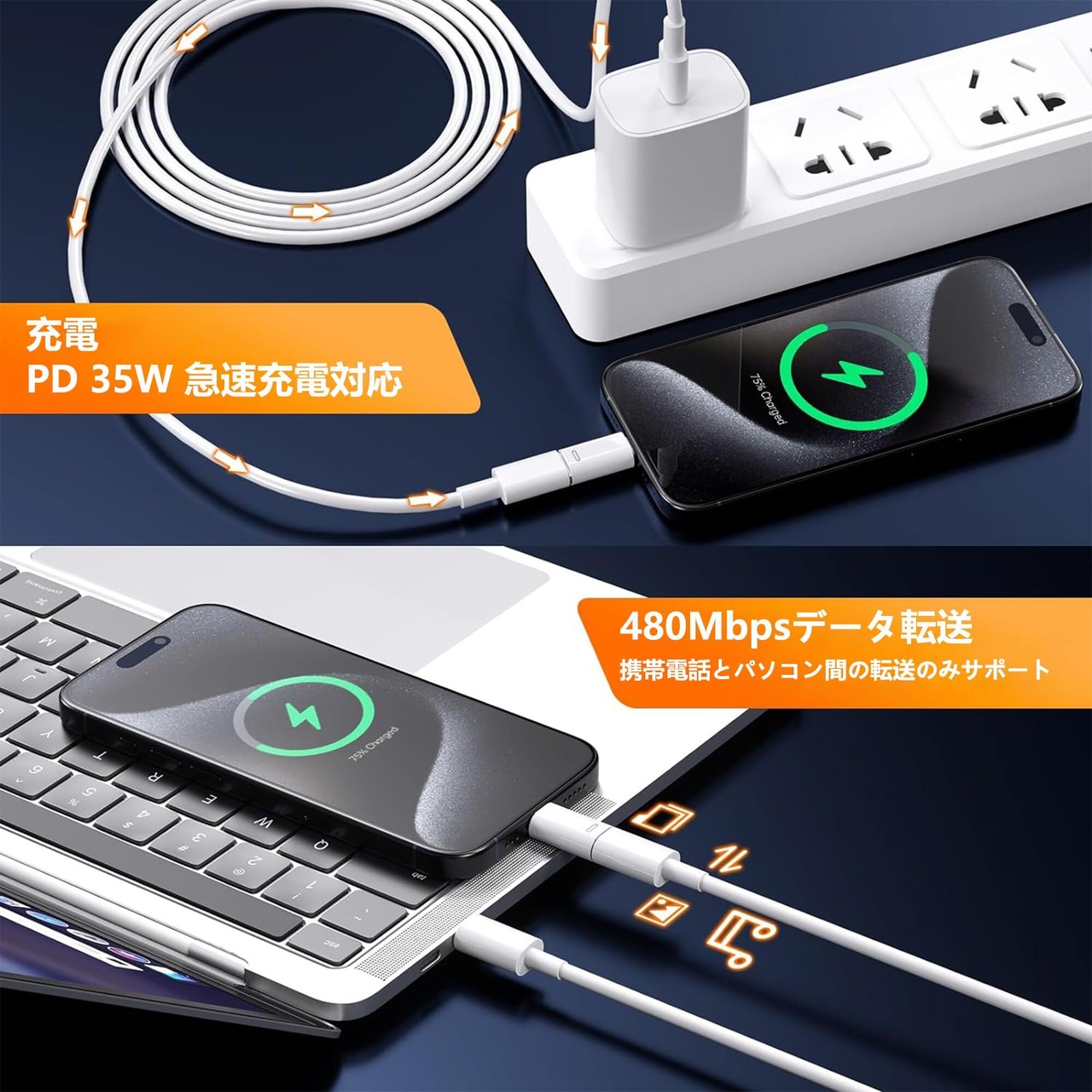 【35W PD急速充電対応】このLight-ning - USB Cアダプタは、高速充電を提供するために35W端子とペアリングされ、アダプタはiPhone 15を充電するためにLight-ningケーブルに接続し、それは30分で60%以上を充電することが期待され、長時間の接続が発熱しない、それは正常に使用することができます。 同時にMacbook、iPadや他のシリーズ製品を充電することができます。