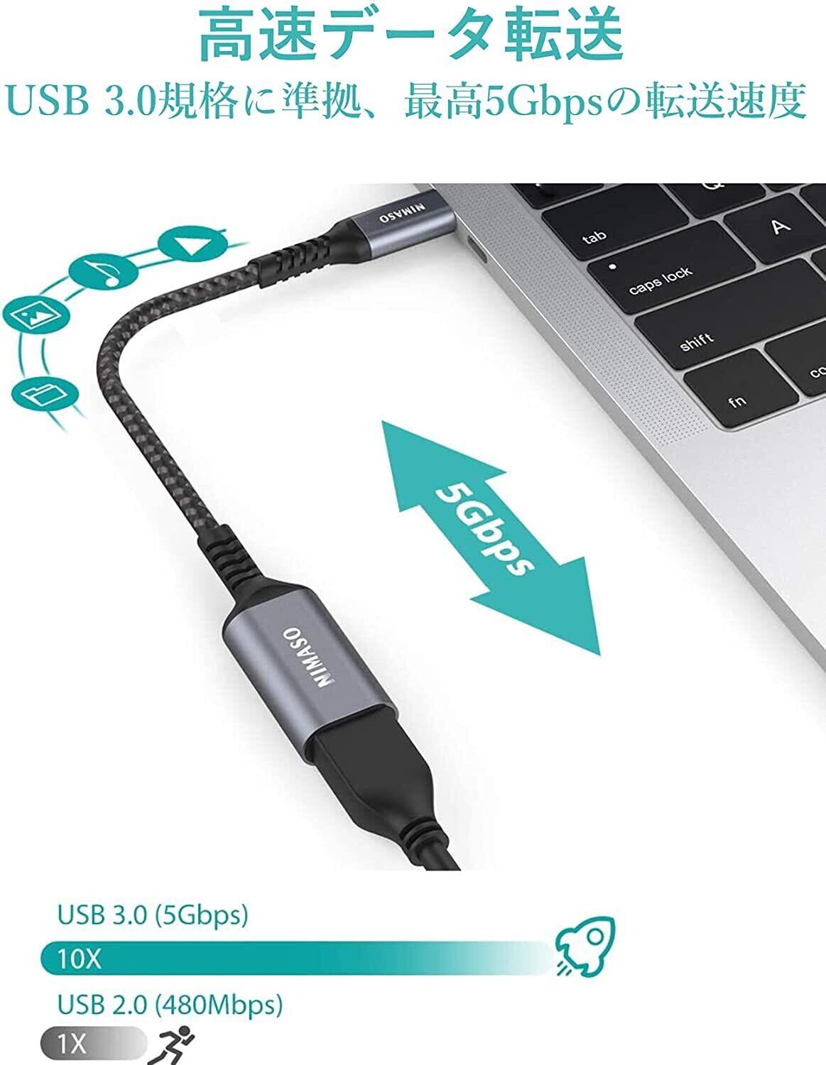 【高速データ転送】USB3.0規格に準拠。データ転送速度は最大5Gbps。最大出力5V/3A。USBタイプC対応デバイスの充電やデータ、写真、音楽の同期に使えます。*USB 2.0/1.Xへの後方互換性あり。