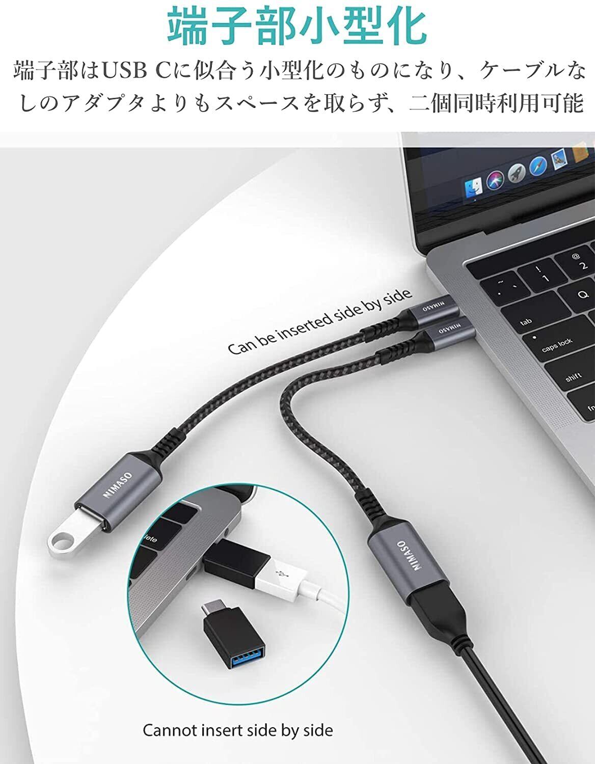 【プラグ&プレイ】本製品は挿すだけで認識可能で、New iMacのようなUSB Cポートしかない端末にも使い慣れたUSBメモリーのようなUSB Aアクセサリーを思う存分使えます。