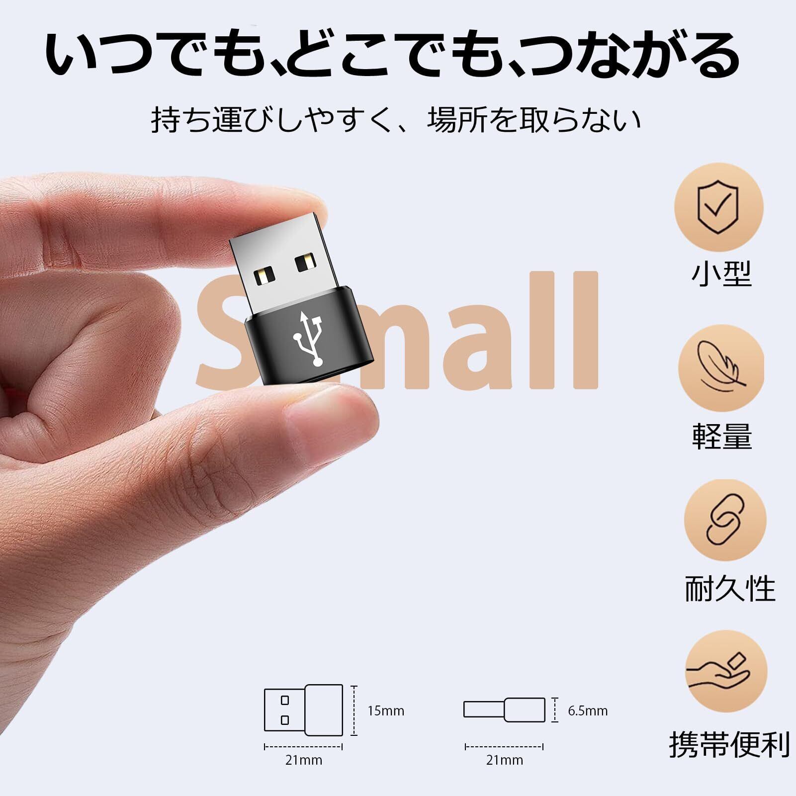 【小型で持ち運びしやすく】usb type c 変換アダプタ。小型化、軽量化を実現、アルミ合金製で安全かつ省スペースのボディは高級感があり、耐久性と耐衝撃性に優れています。わずか21x15x6.5mmのサイズで、収納しやすくて、旅行中、自宅、職場などで持ち運びが簡単です。