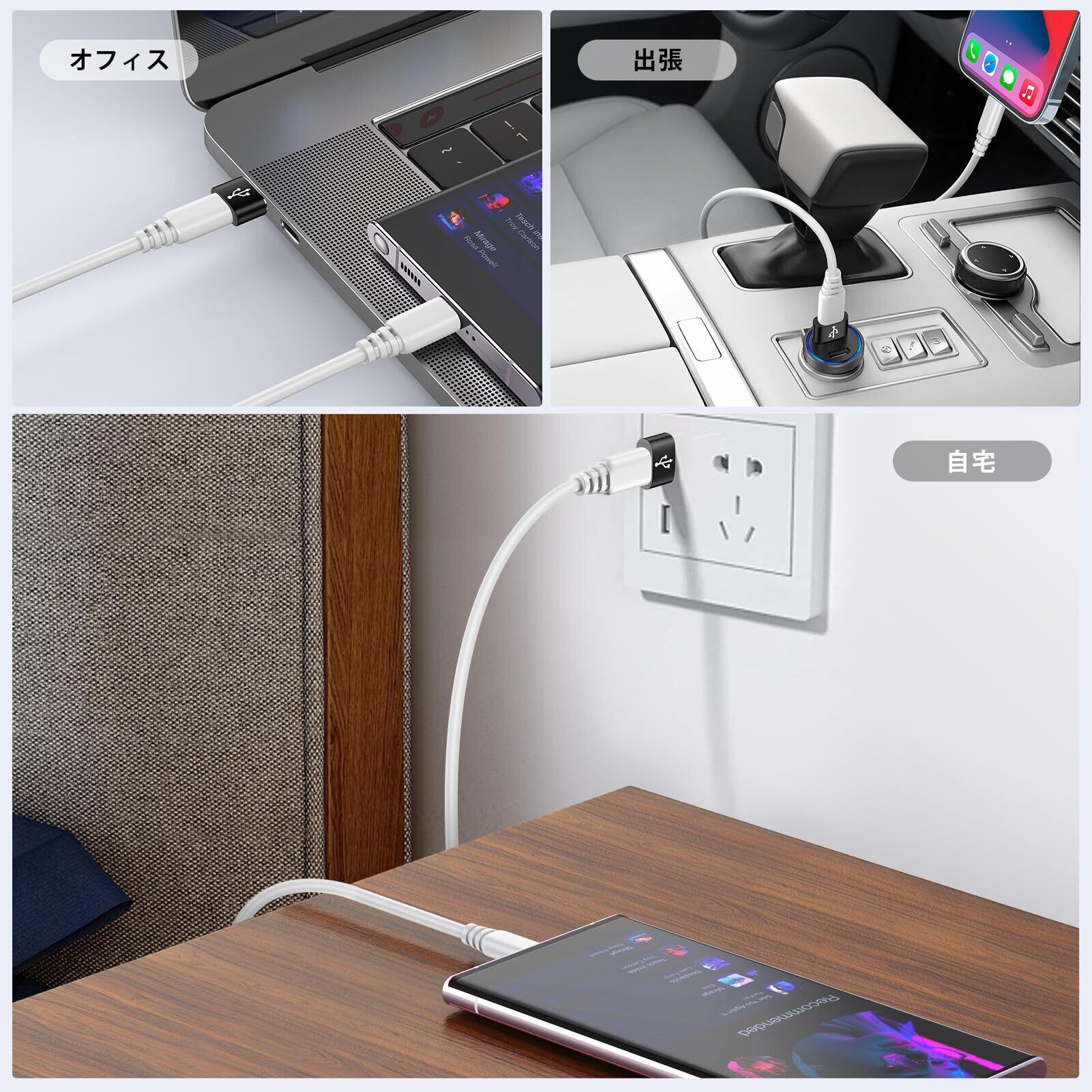【高速データ転送】Type C (メス) to USB 2.0 (オス) 変換アダプタ、最大480Mbpsの高速でデータ転送を対応します。ファイルや音楽などを転送でき、携帯電話やタブレットの同時充電にも対応している。在宅やオフィス勤務、またはビジネス出張のお使い、高効率の作業性を実現しました。▲ご注意:本製品はUSB PD急速充電プロトコルをサポートせず、ビデオ出力をサポートしない、イヤホンをサポートせず。