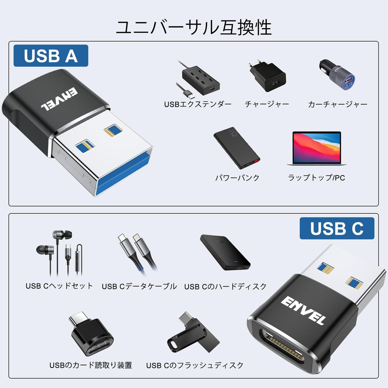 ENVEL USB Type C 変換アダプタ USB 3.0 アダプター 急速充電と高速データ転送 OTGコンバーター Apple Watch iPhone 11 12 13 14 15 Galaxy S24 S23 S22 iPad Air 4 5 Mini 6対応