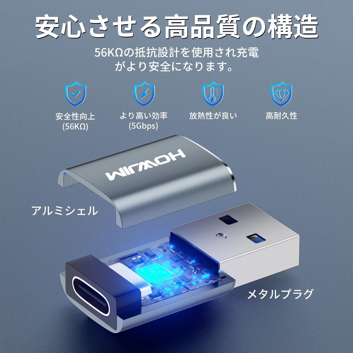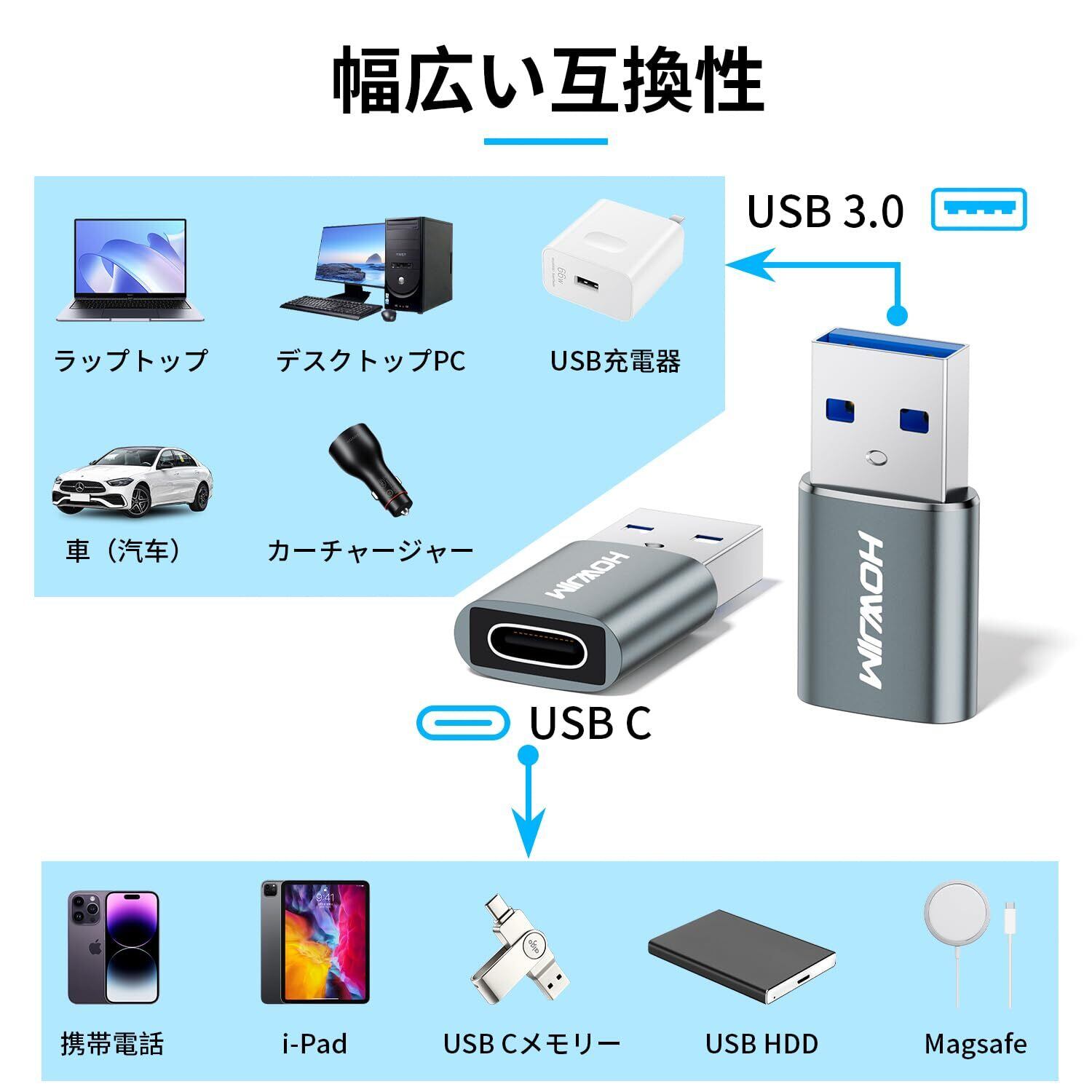 HOWJIM USB Type-C 変換アダプタ QC3.0急速充電 5Gbps高速データ転送 OTG対応 Type C (メス) to USB 3.0 (オス) 変換アダプタ タイプC 変換 M-acBook/Pad/Phone15 16 Pro Max/A-pple Watch/A-irpods/G-alaxy/P-ixel/X-peria/充電器など機器対応 グレー