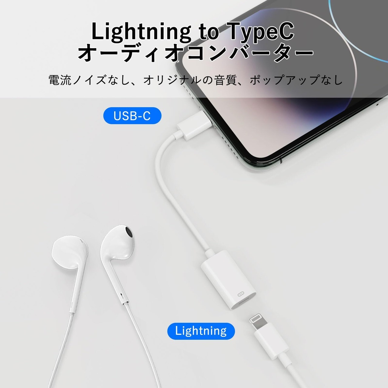 【Lightning - USBC 変換アダプター】このUSB-C to Lighting変換アダプターにより、音声出力に対応したUSB-C端子からLightingイヤフォンジャックに変換するケーブルです。さらに、充電やデータ転送にも使用できます。多機能を統合したオールインワンコンバーター!複数の電子機器を所有していて、充電ケーブルやヘッドホンケーブルを何種類も持っていくのが面倒な場合は、コンバーターを持っていくと簡単に解決できます。(注:通話やオーディオをサポートします。互換性があるかどうかわからない場合は、お問い合わせください。