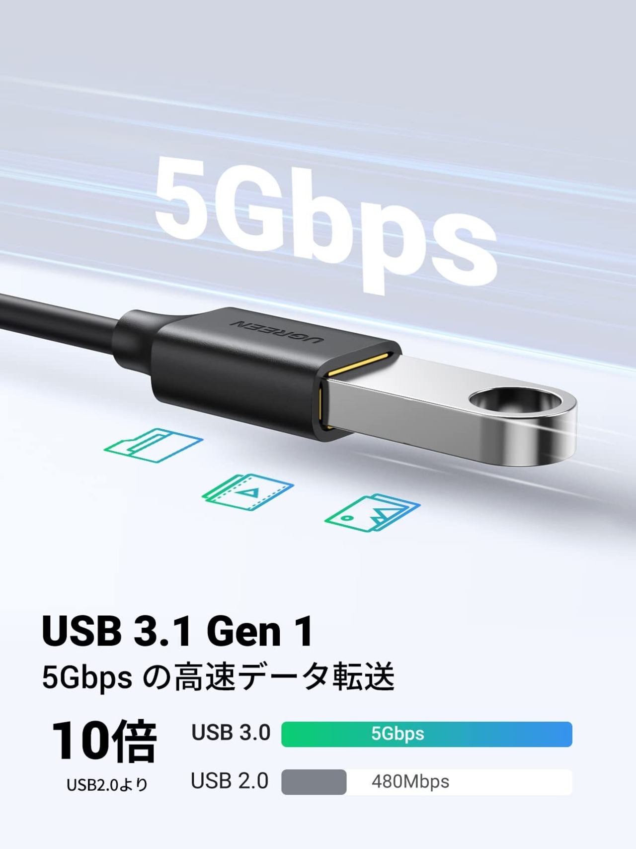 高速データ転送:USB3.0規格に準拠する最大5Gbpsのデータ転送速度がサポートしております。USB 2.0(最大480Mbps)より約10倍速く、大容量のHD映画や仕事ファイル、記念写真等をわずか数秒で転送完了できます。USB 2.0/1.0への後方と互換性があります。