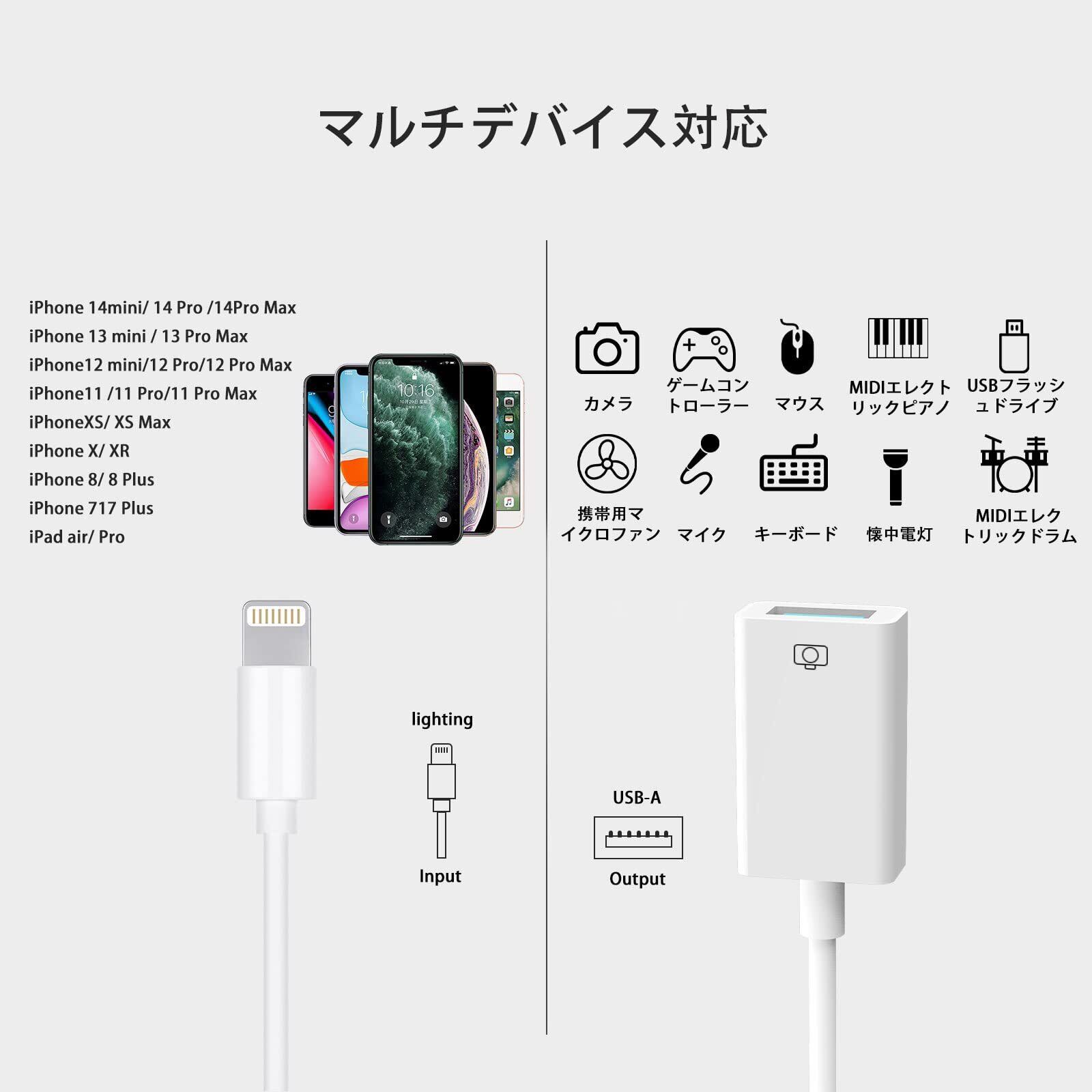 【ニューモデル】Apple MFi認証 iPhone usb 変換アダプタ OTGケーブル データ双方向伝送 写真/動画/音楽/iPad/カメラ/MIDI/キーボード/DAC/マイク/マウス/iOSに対応 iPhone Lightning-USBカメラアダプタ