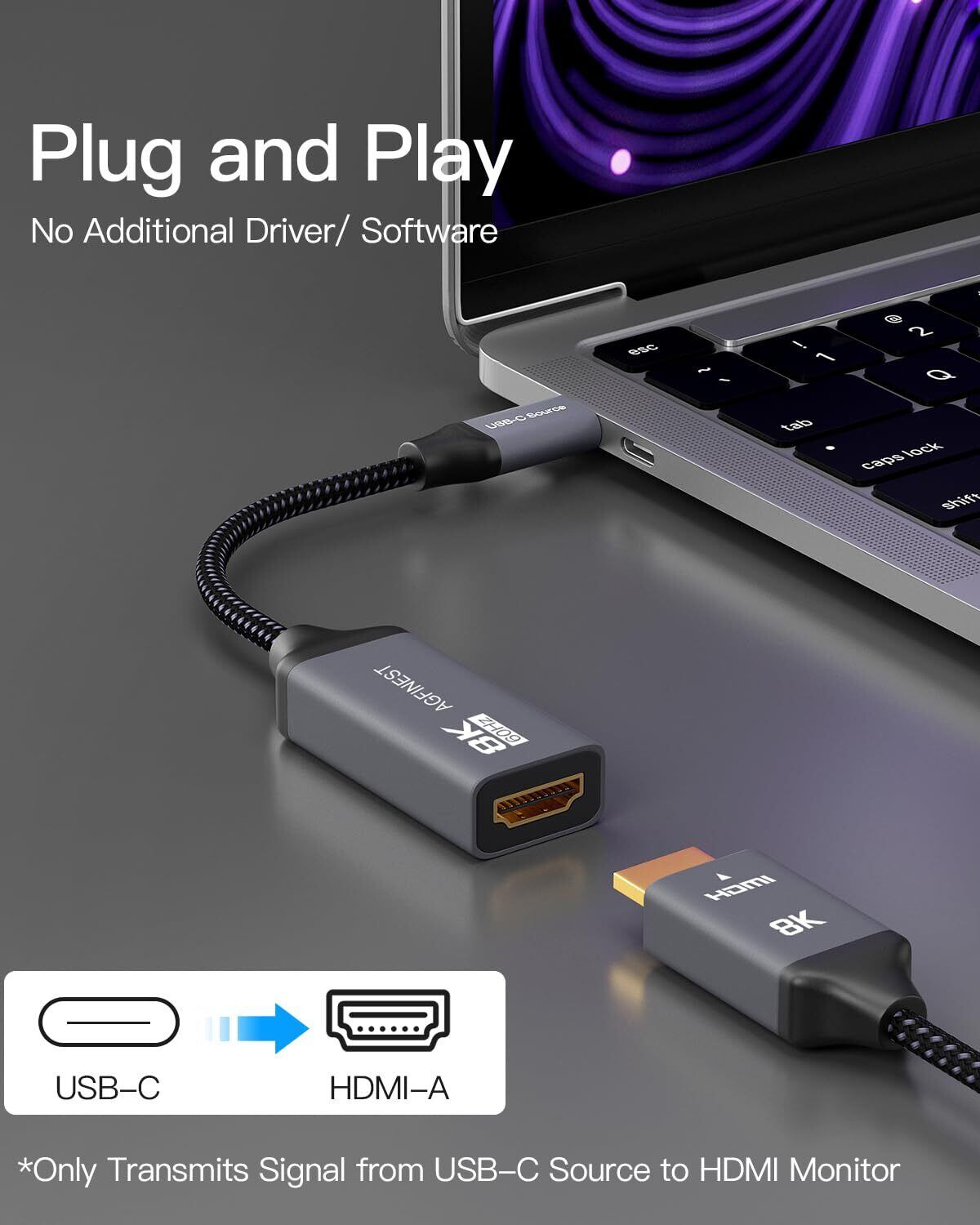 【8K Ultra HD USB C - HDMIアダプタ】:USB C - HDMI 2.1アダプタは、USB Type-C(サンダーボルト3/4対応)ノートパソコン/スマートフォン/タブレットなどをHDMIモニター/プロジェクターに接続し、超高精細な映像体験を提供します。8Kの高解像度をサポートし、大画面で没入感のあるエンターテイメントやゲーム体験を楽しむことができます。(*注:単方向、USB-CホストデバイスからHDMIディスプレイへのみ)。