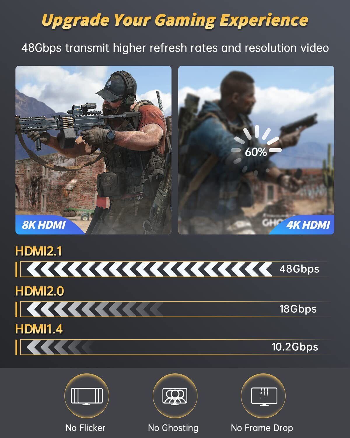【多機能サポート】:8K USB C - HDMI 2.1アダプタは、最新のHDMI 2.1規格とUSB-Cの汎用性を兼ね備えています。また、48Gbpsの帯域幅、HBR3、3Dビデオ、Dolby 7.1、HDCP 2.2をサポートしています。ダイナミックHDRは、豊かな色彩と超微細なディテールでリアルな視覚効果を実現します。サラウンドサウンドオーディオのためのeARCオーディオビジュアルの饗宴をアップグレードし、ホームシアターシステムを構築します。プラグアンドプレイだけで、追加のドライバやソフトウェアは必要ありません。