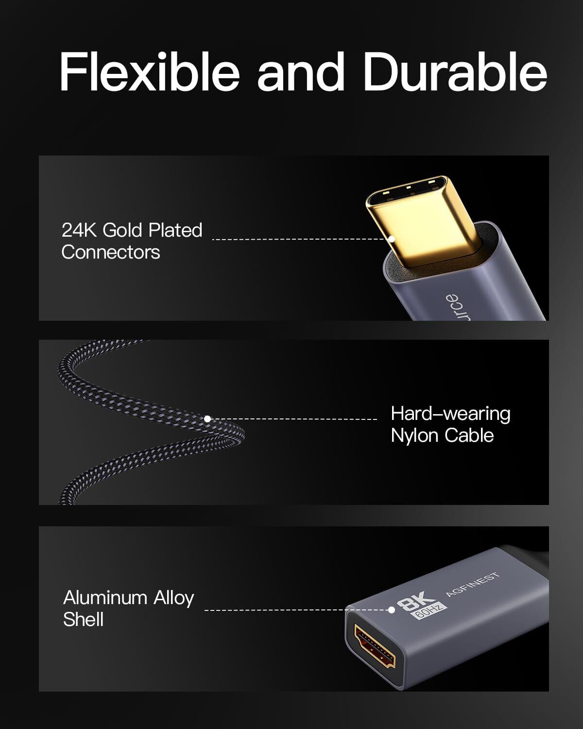 USB CからHDMI 2.1アダプター 8K@60Hz USB-CメスからHDMIオスコンバーター 8K 4K@120Hz 2K@240Hz HDR VRR FreeSync Type C Thunderbolt 3/4対応 Steam Deck MacBook iPad Pro Dell対応 (HDMIメス)