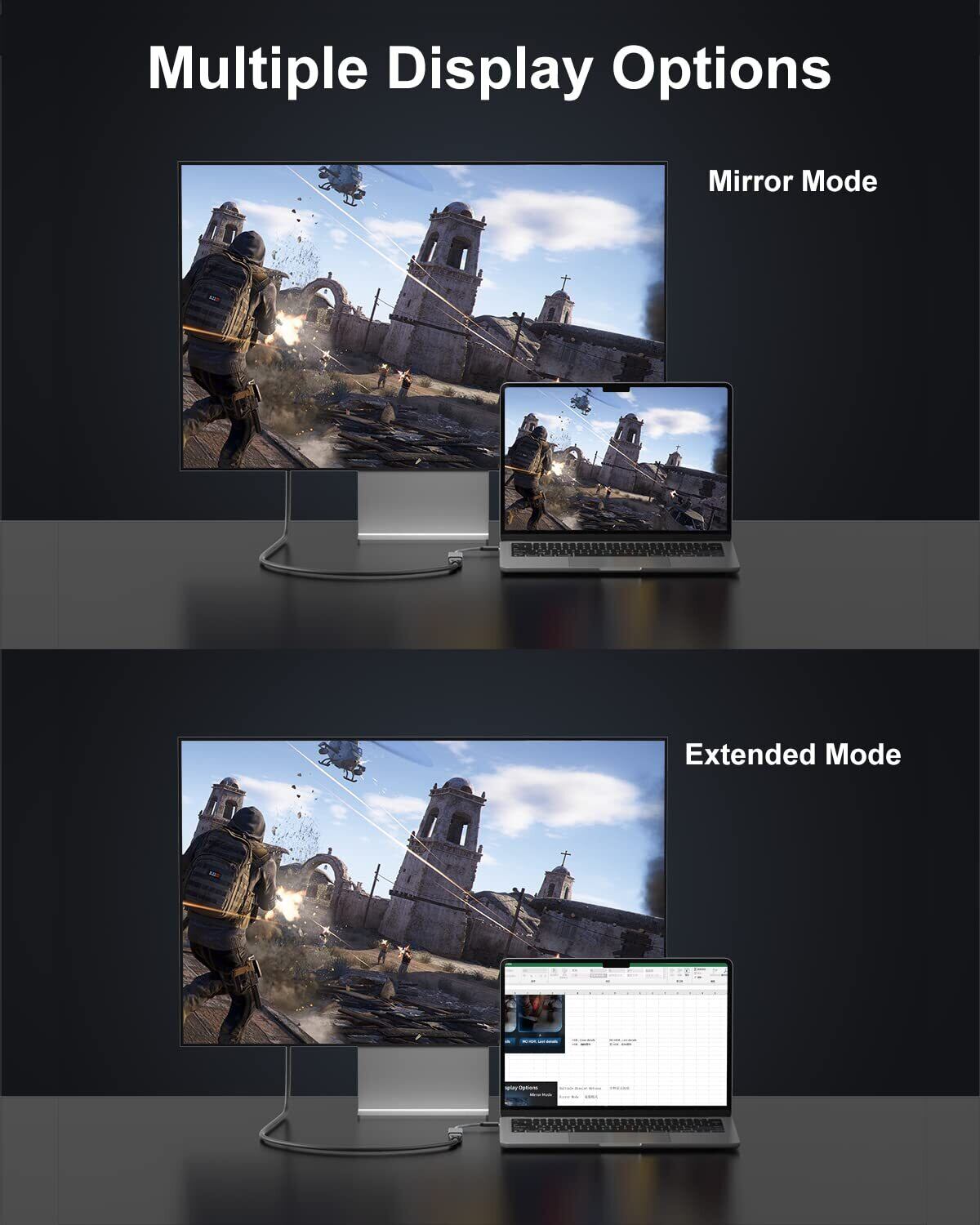 【ユニバーサルな互換性】:USB C - HDMI 2.1アダプタは、DP Altモード搭載のUSB-C (Thunderbolt 3/4 ) ポートコンピュータをHDMI搭載ディスプレイに接続します。Macbook Pro、Macbook Air、iPad Pro、Mac Mini M1、Dell XPS、Surface Bookなどのデバイスに幅広く対応します。高解像度のビデオ伝送体験を提供します。勉強、仕事、娯楽がもっと便利になります。オフィス及び家庭娯楽、家庭映画館、ビデオ会議、遊ぶゲーム、等で広く利用された。