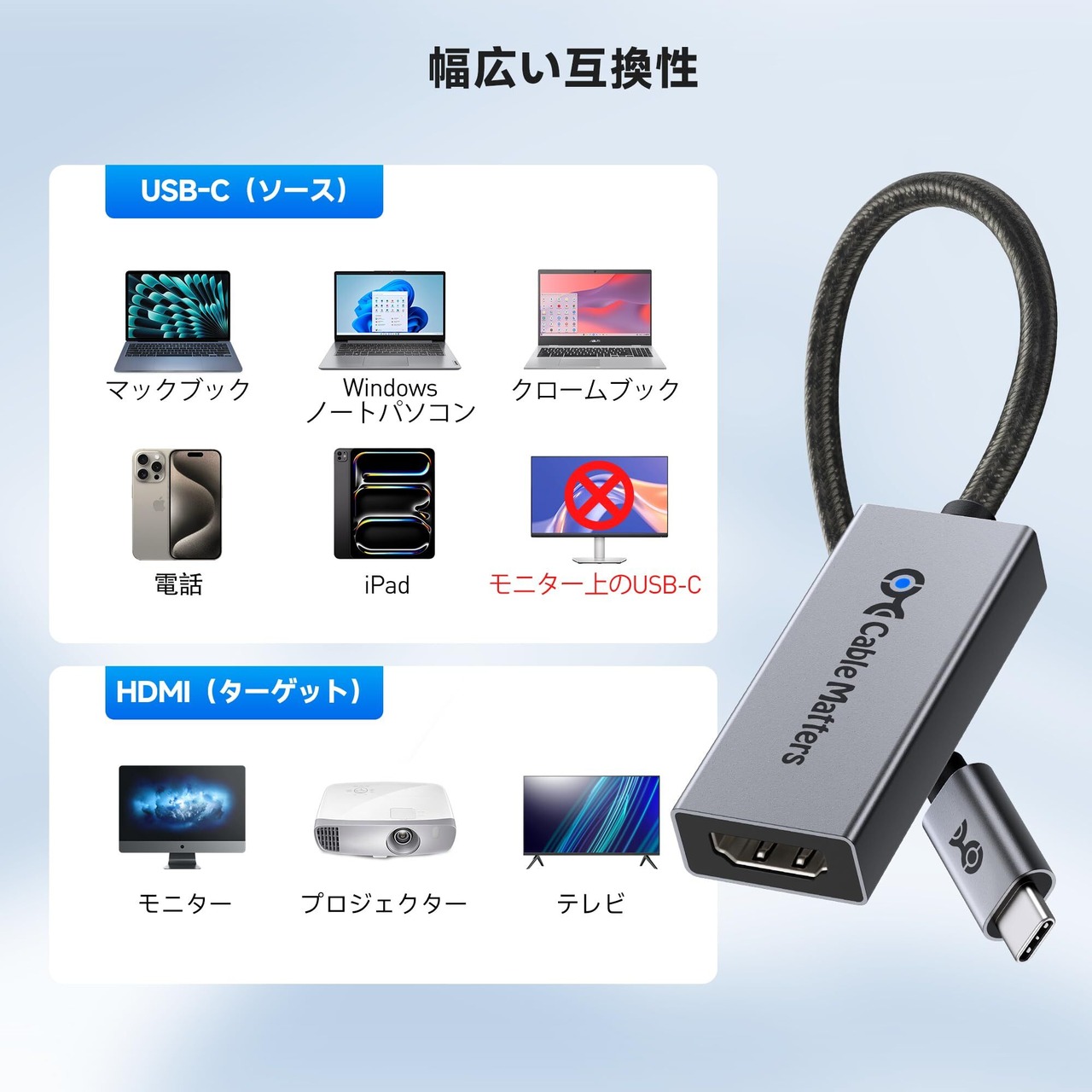 Cable Matters 48Gbps USB C HDMI 2.1アダプタ [8K 60Hz / 4K 240Hz HDR対応] Thunderbolt 4 HDMI 2.1 変換アダプタ USB4 / Thunderbolt 5対応 - Macは最大4K 60Hz出力
