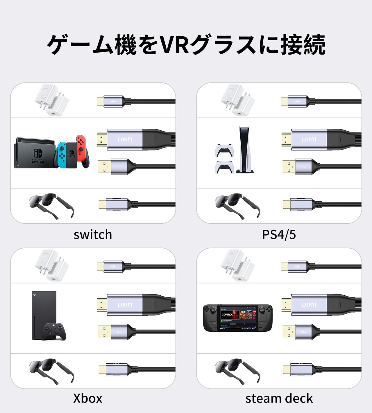 広範な互換性:この変換ケーブルはさまざまなシナリオで使用することができます。PS4、Switch、Xboxなどのゲーム機をAR眼鏡に接続して没入型のゲーム体験を楽しむことができます。また、他のHDMIデバイスをUSB-Cデバイスに接続するためにも使用でき、さまざまな接続ニーズに対応します。※もしNreal Airとこのケーブルを使用して、画面の上部が下部に表示される場合は、Nreal Airのウェブサイトにアクセスして最新のファームウェアをアップデートしてください。