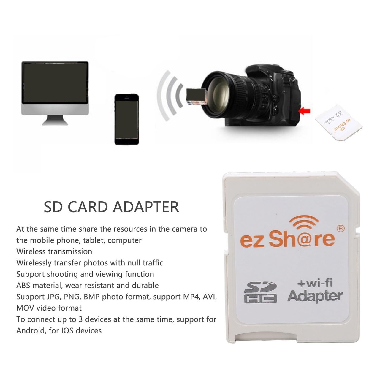 2. 簡単な操作: SDHC または TF カードを WiFi SD アダプターに挿入すると、カメラからワイヤレスでスマートフォンまたはタブレットに送信された写真やビデオに、Wifi 経由でアクセスして共有できます。