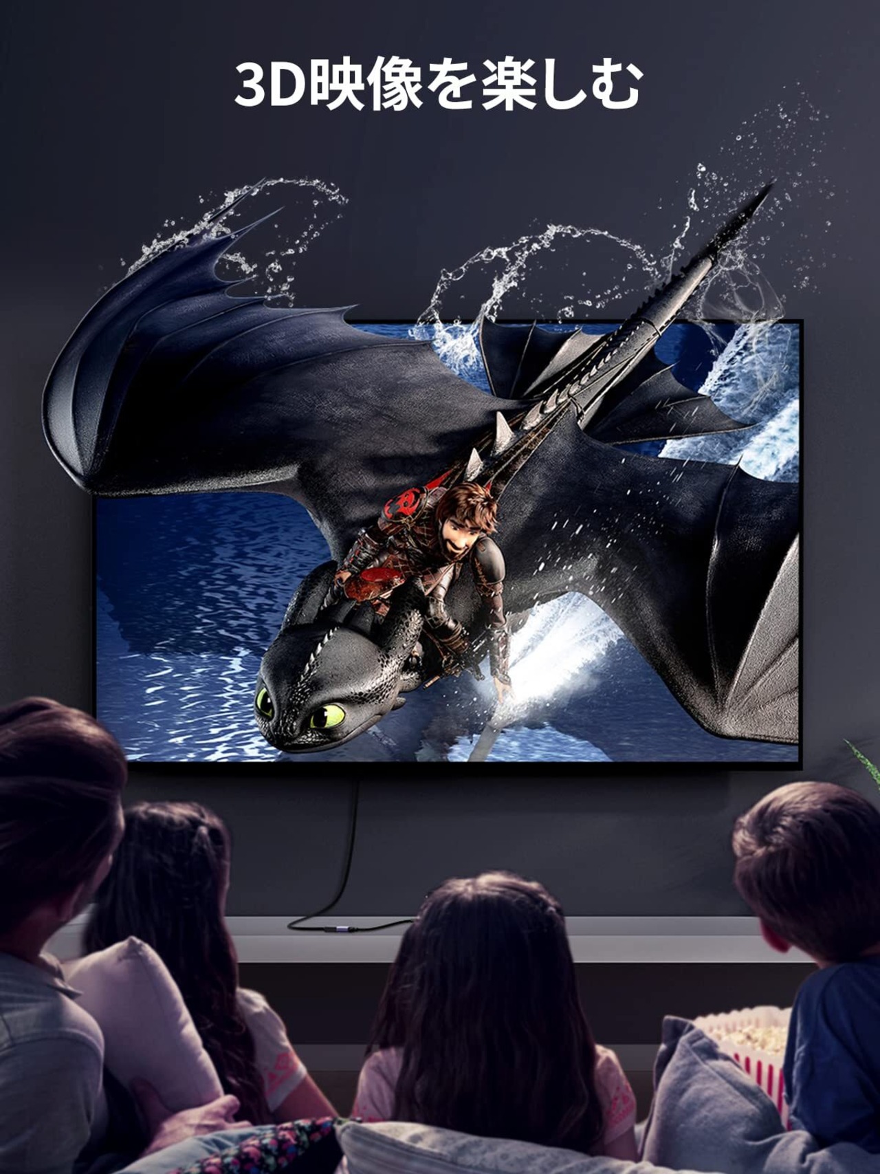 4K UHDで画面の精細感をアップ:HDMI 2.0基準は従来の1080Pの約4倍の情報量を持ち、より鮮明且つディテールの細かいリアルで高精細な写真と映像ソースを再現することができます。また、高品質な音声を届けられるeARCを対応、これまでにない没入感ある視聴体験を実現します。