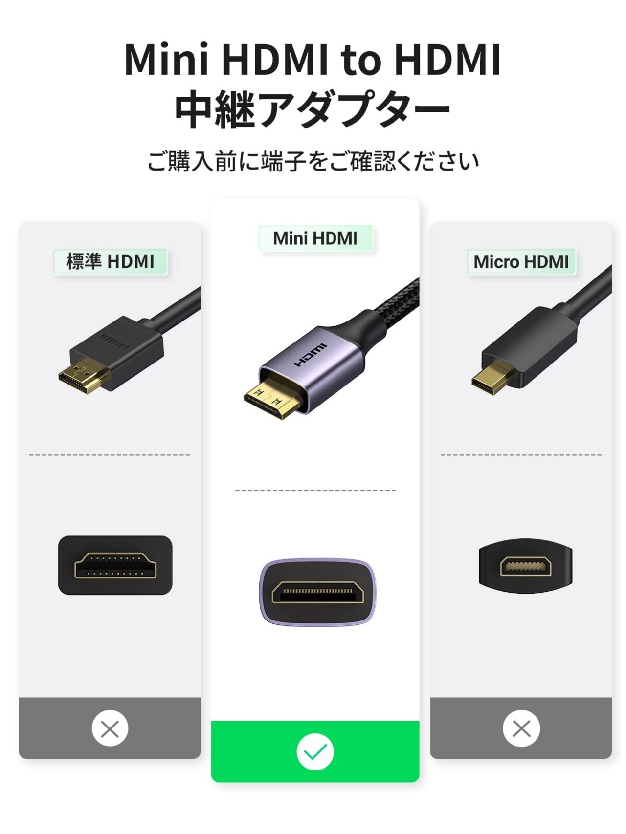 UGREEN Mini HDMI 変換 オスメス ミニHDMI 変換ケーブル (ミニHDMIタイプCオス - タイプAメス) HDMI 2.0 4K@60Hz ハイスピード 変換アダプタ グレー 25cm